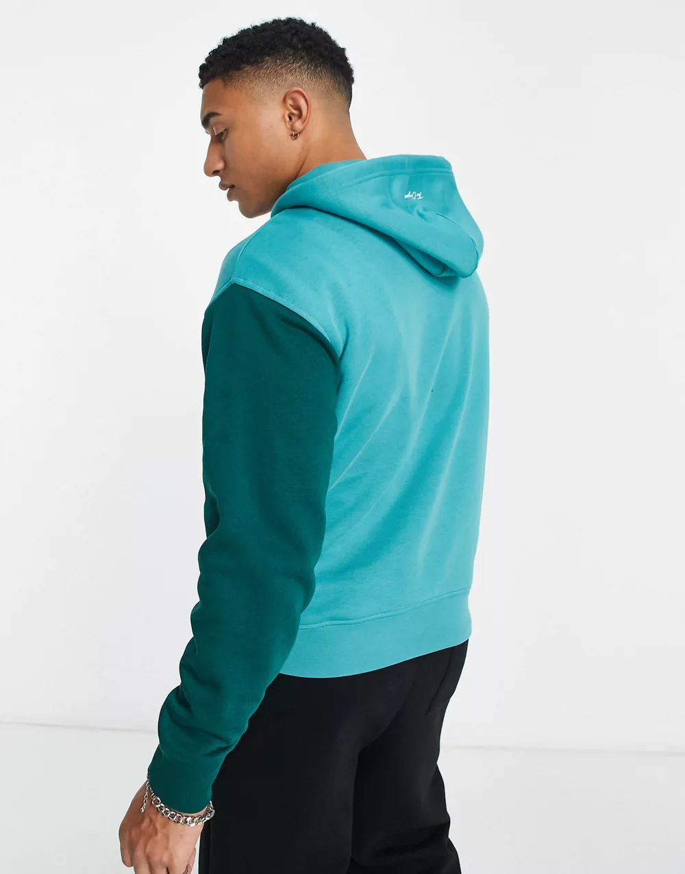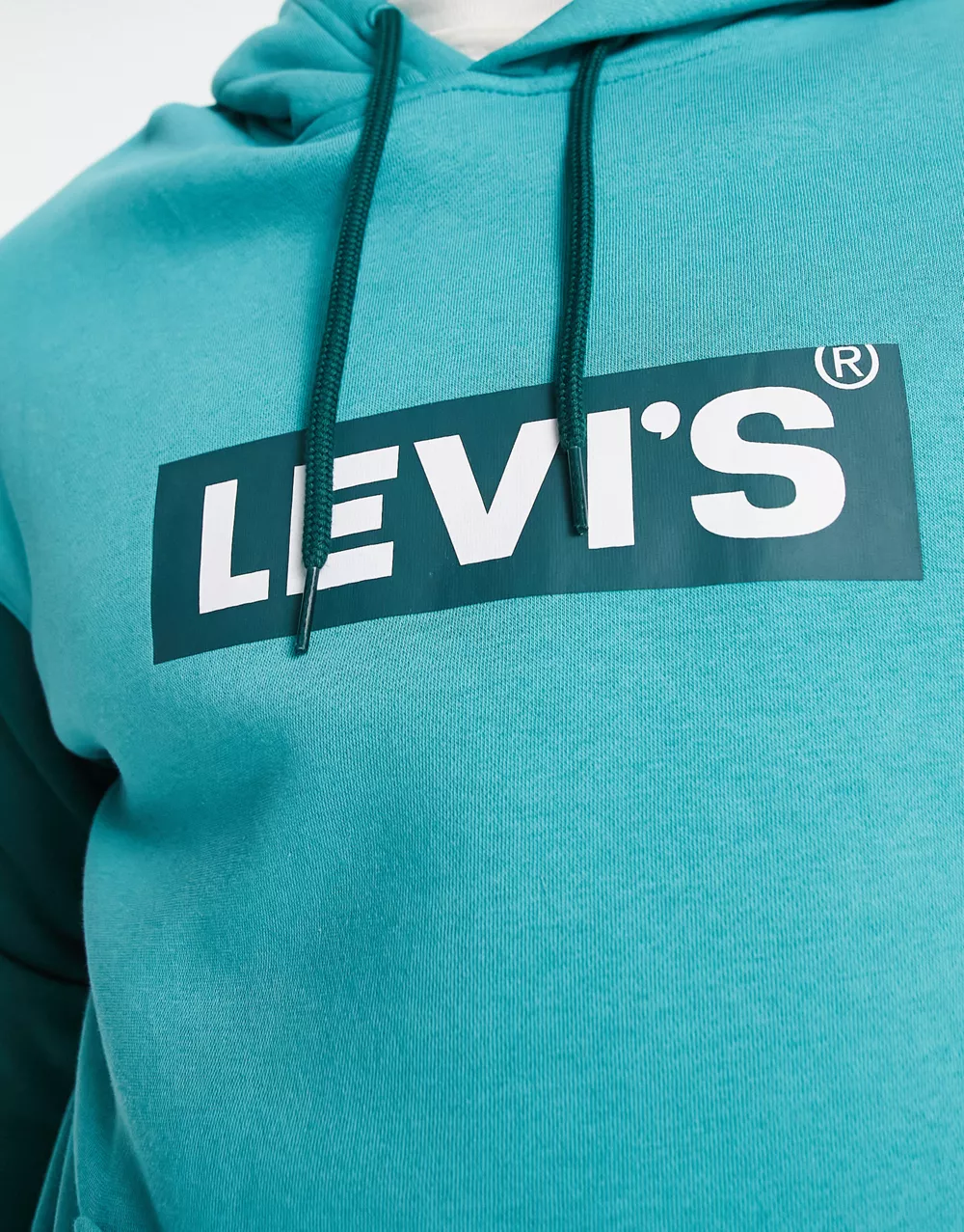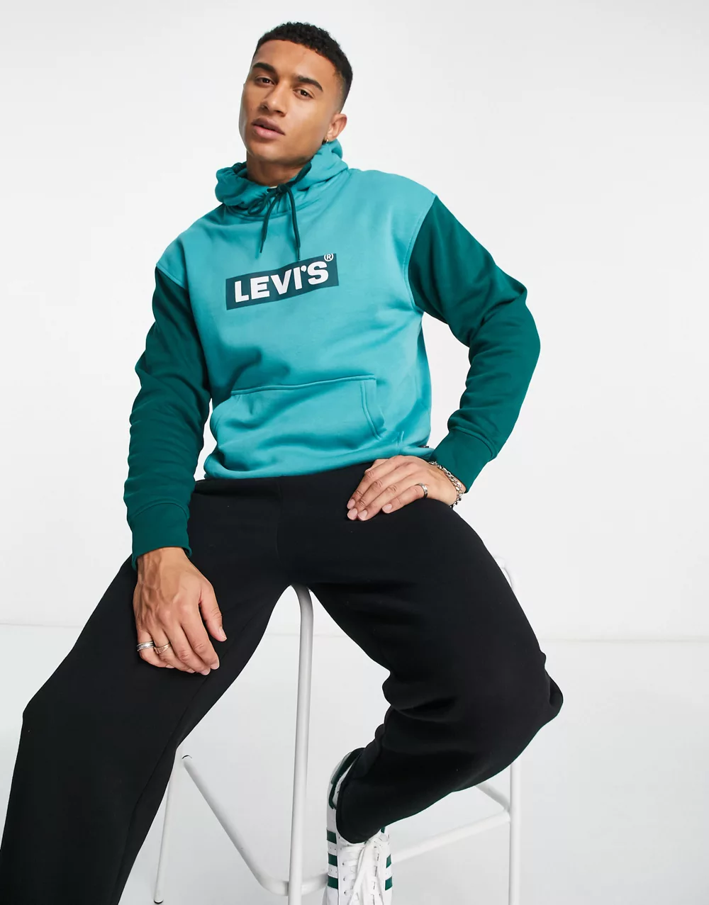 - Levi's hoodie in green with central box tab logo and contrasting sleeves