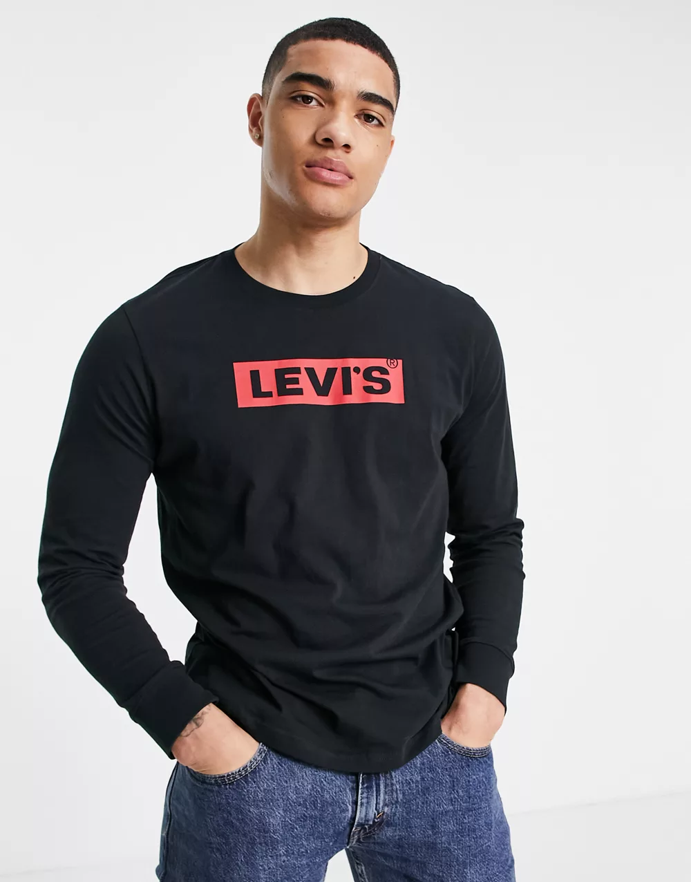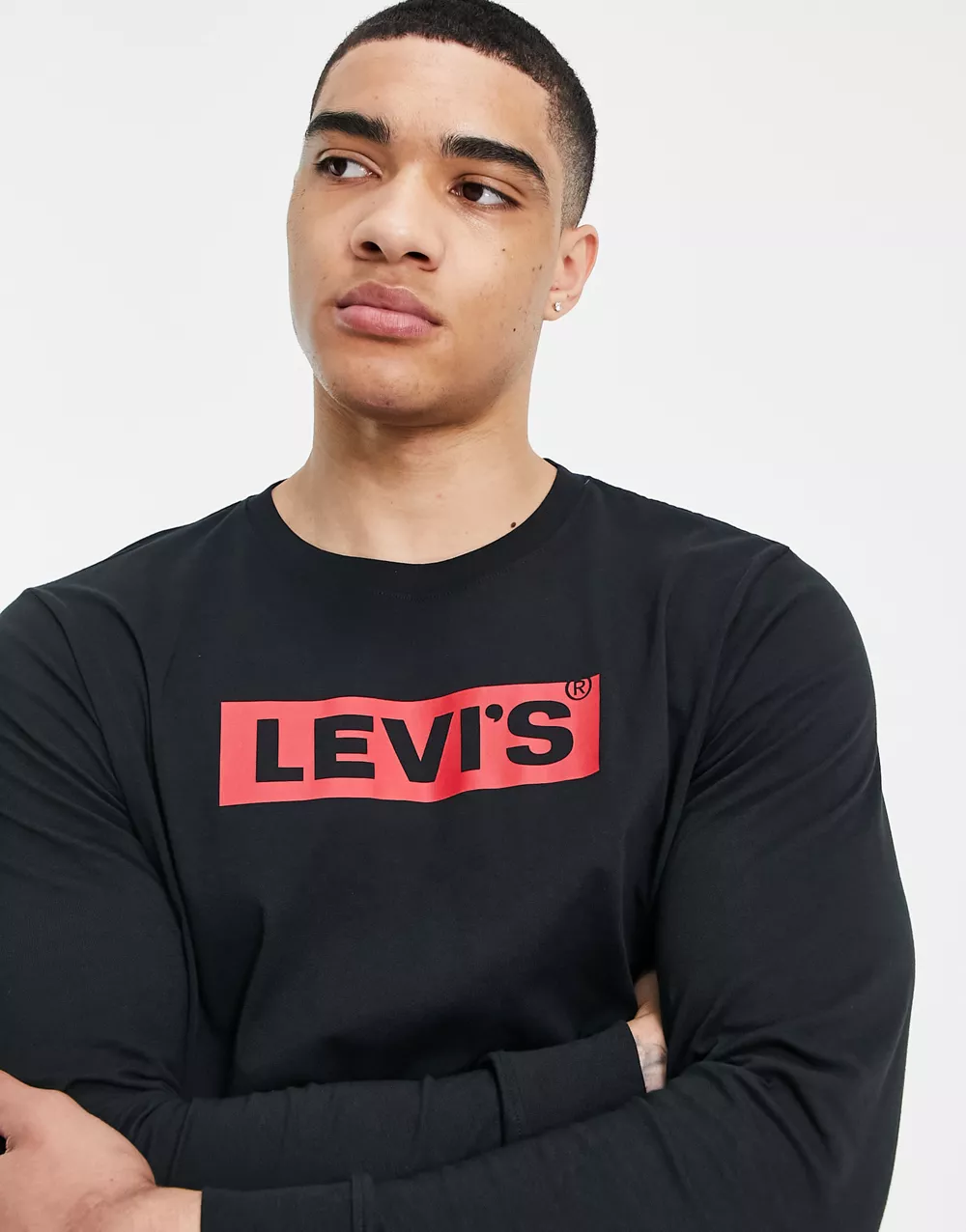 - Levi's large boxtab logo relaxed fit long sleeve top in black