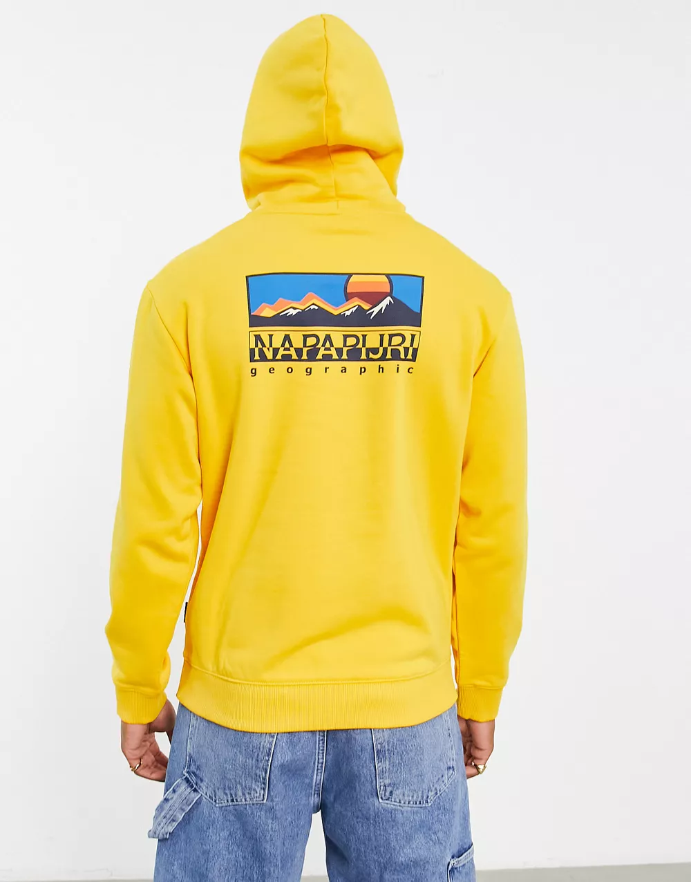 - Napapijri b-freestyle mountain back print hoodie in yellow