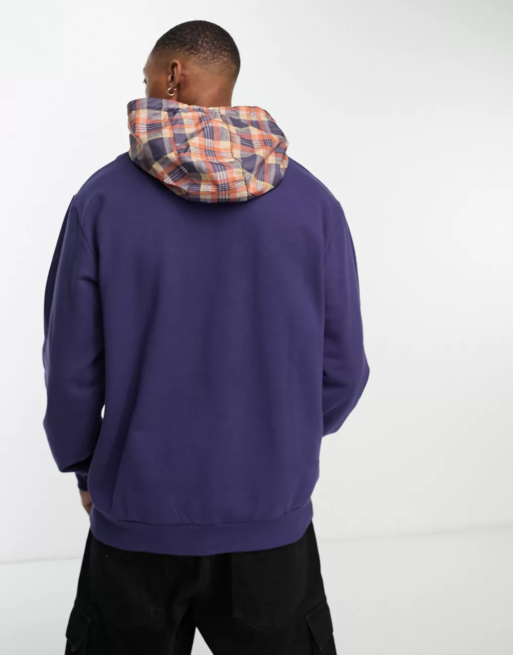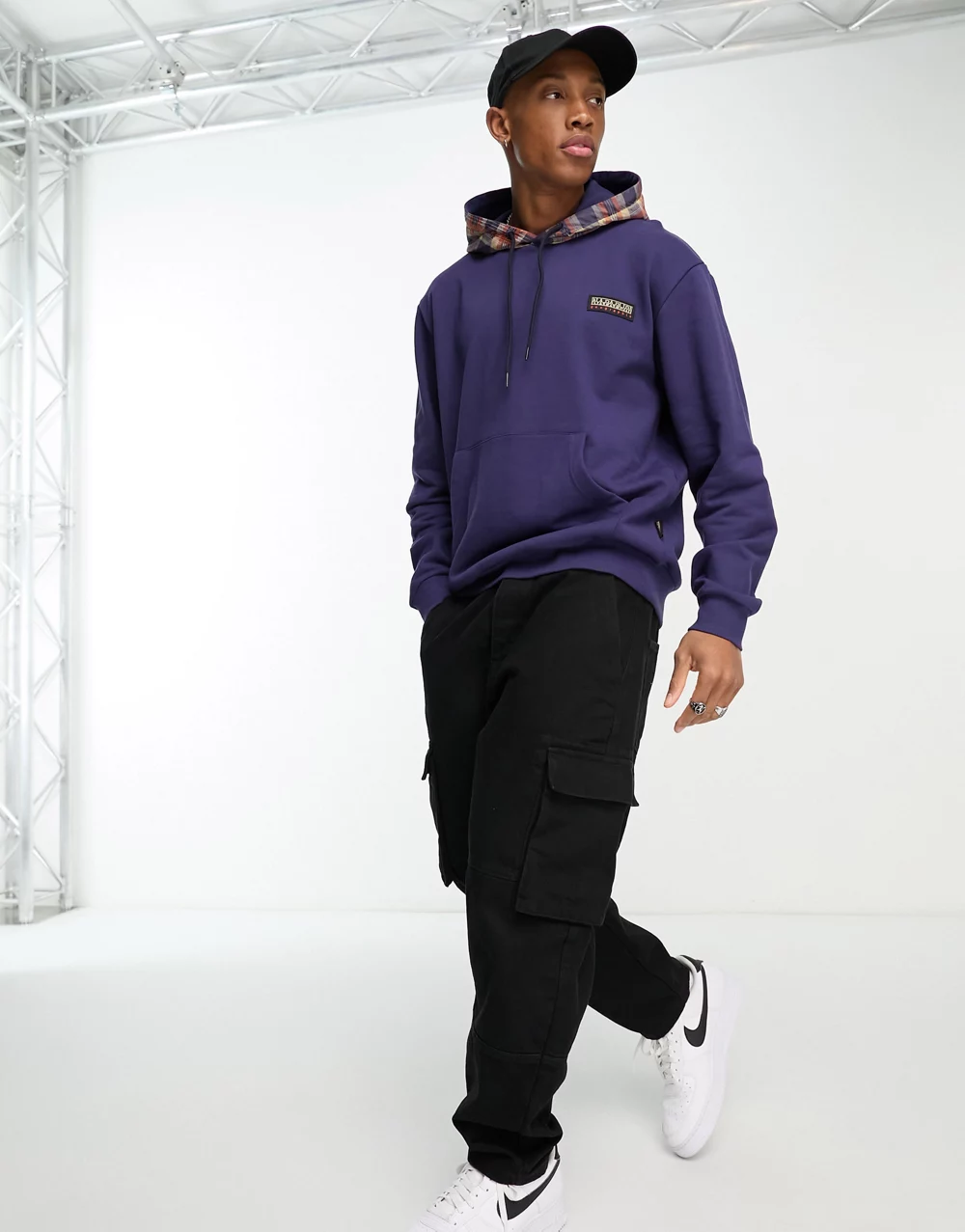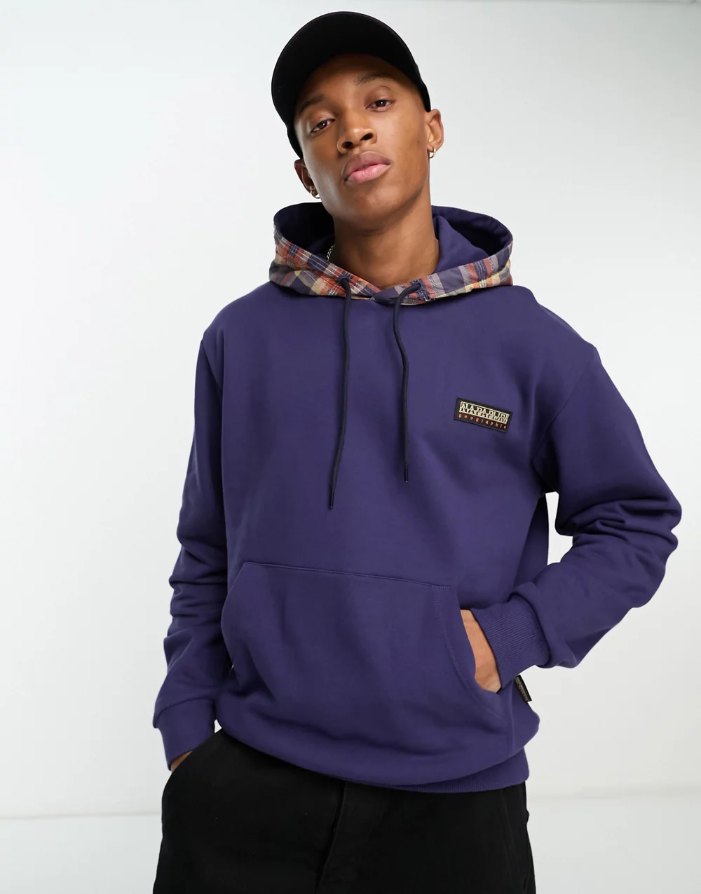 - Napapijri x Liberty Candolle fleece hoodie with checked hood in navy