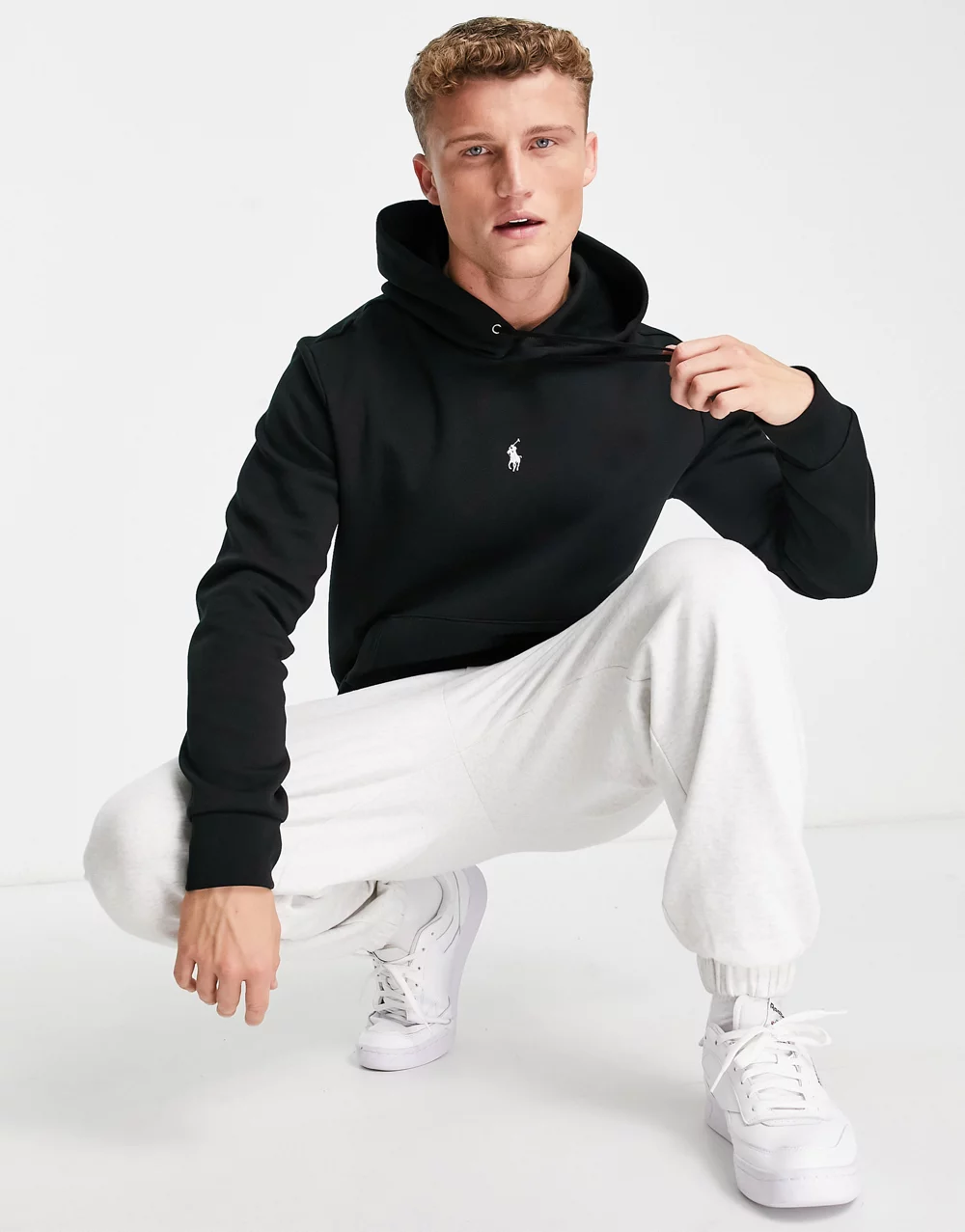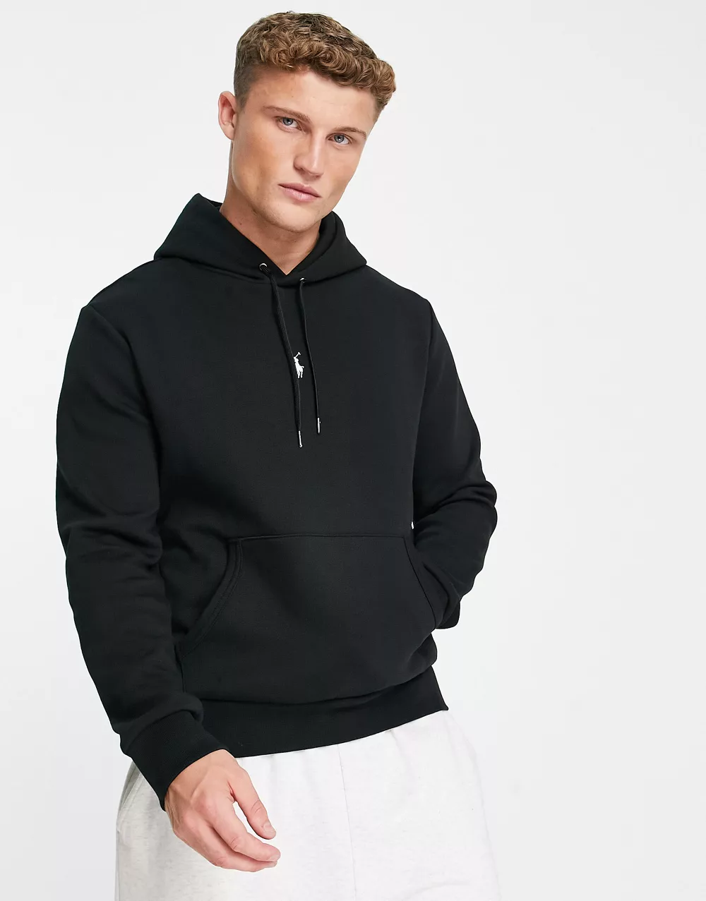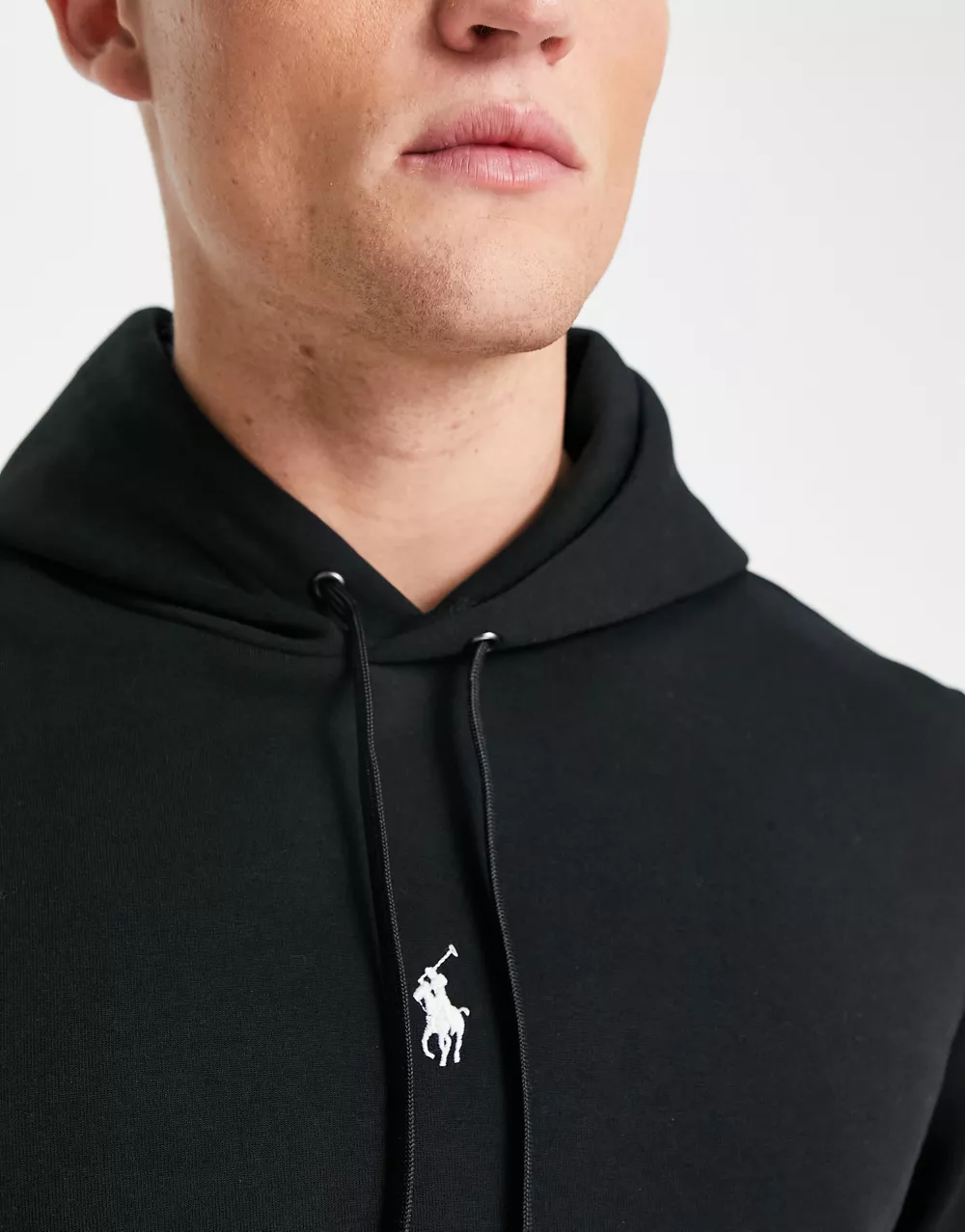 - Polo Ralph Lauren central icon logo double knit sweat hoodie in black