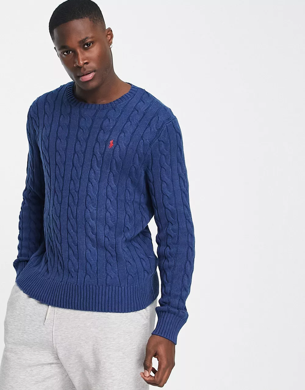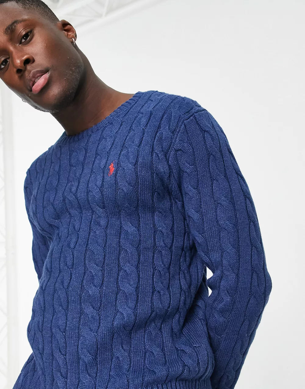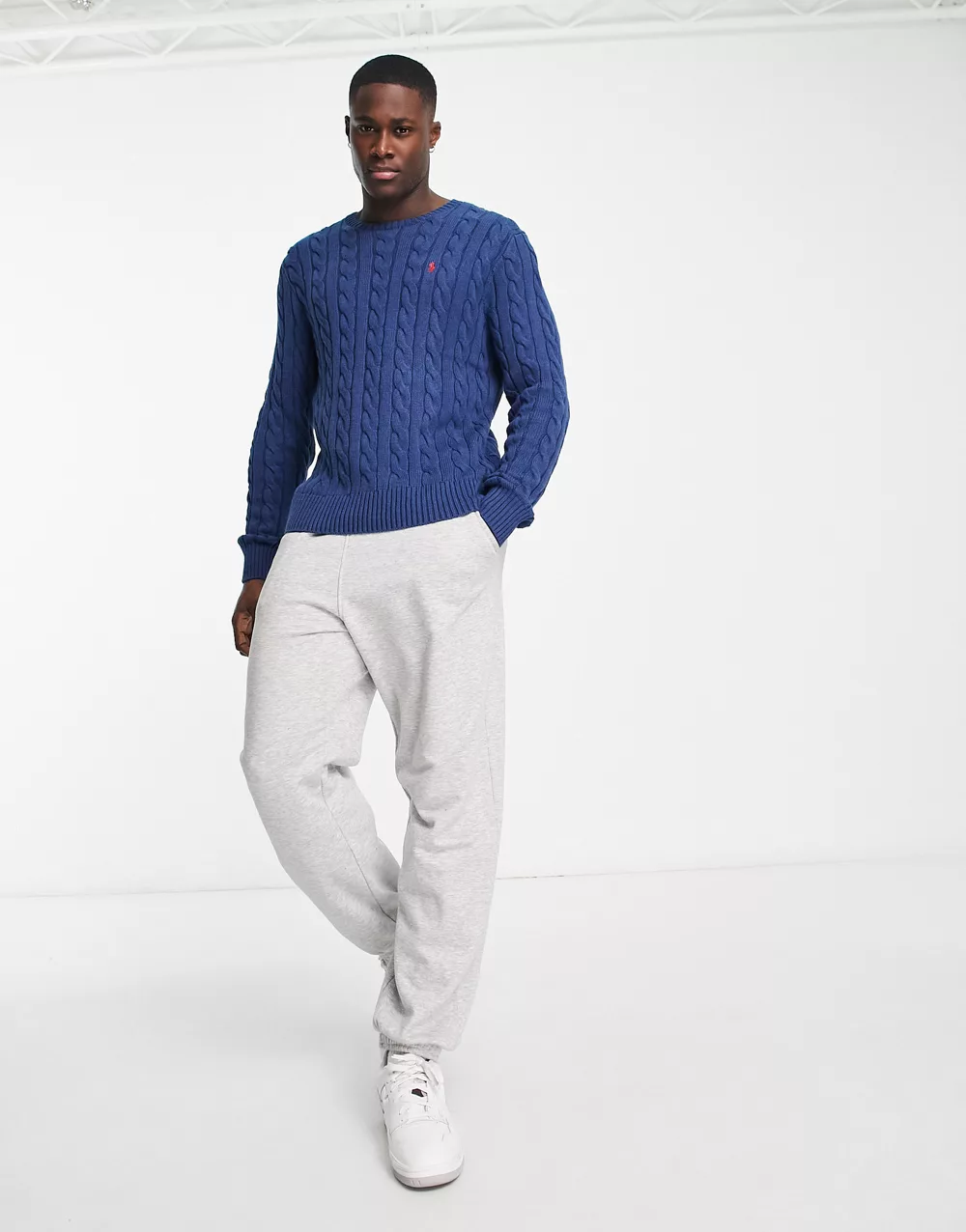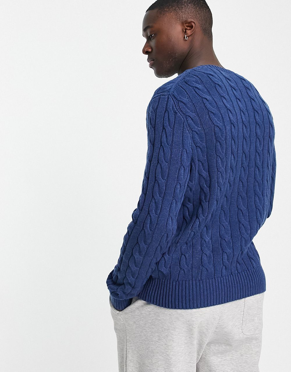 - Polo Ralph Lauren icon logo cable cotton knit jumper in navy marl