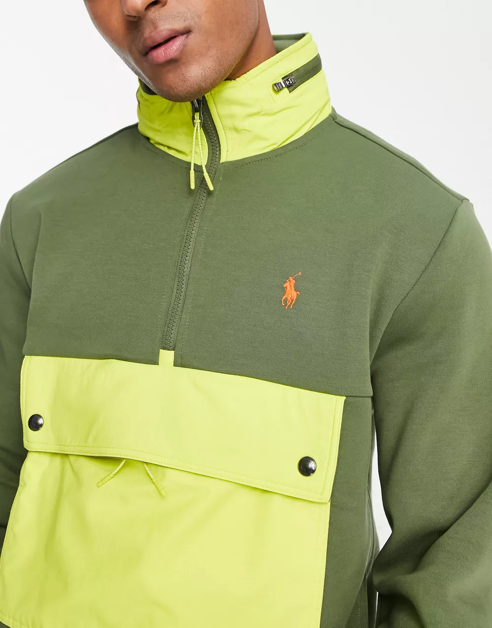 - Polo Ralph Lauren icon logo contrast pocket & neck half zip sweatshirt in dark green