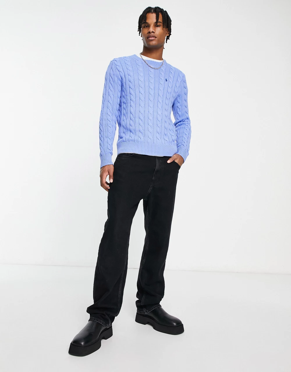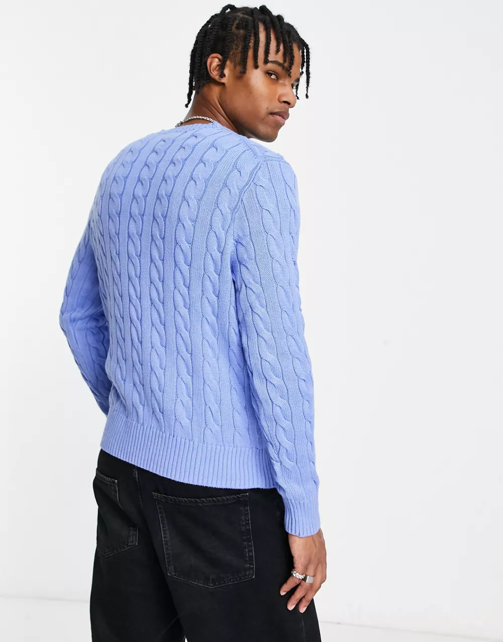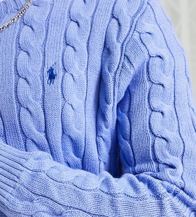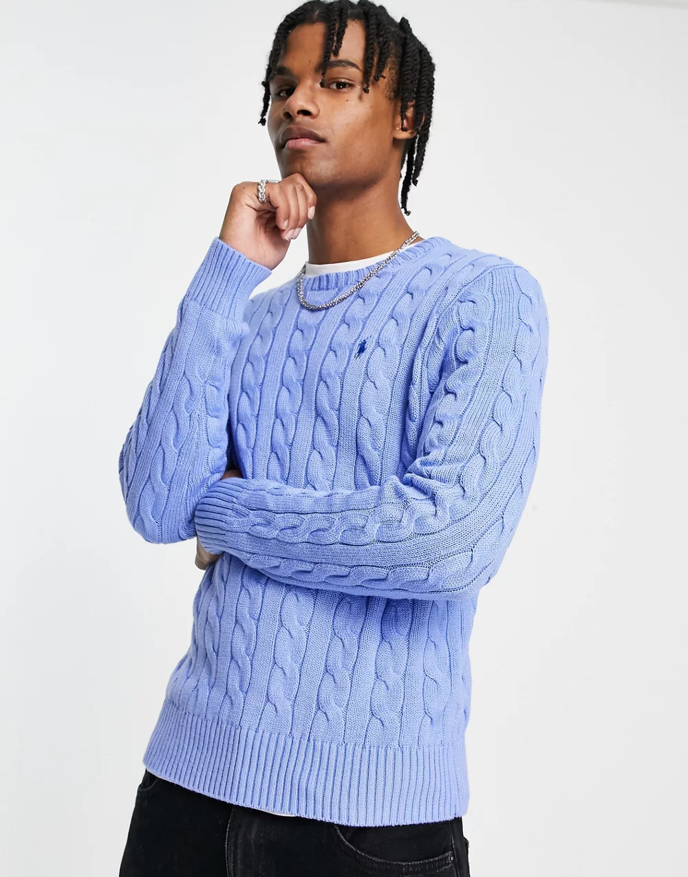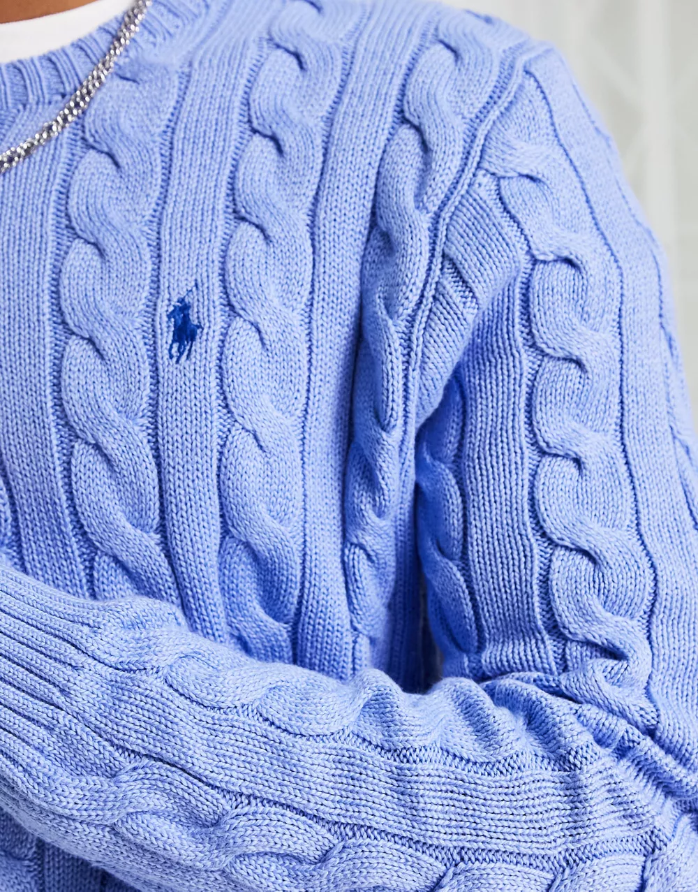 - Polo Ralph Lauren icon logo cotton cable knit jumper in light blue marl