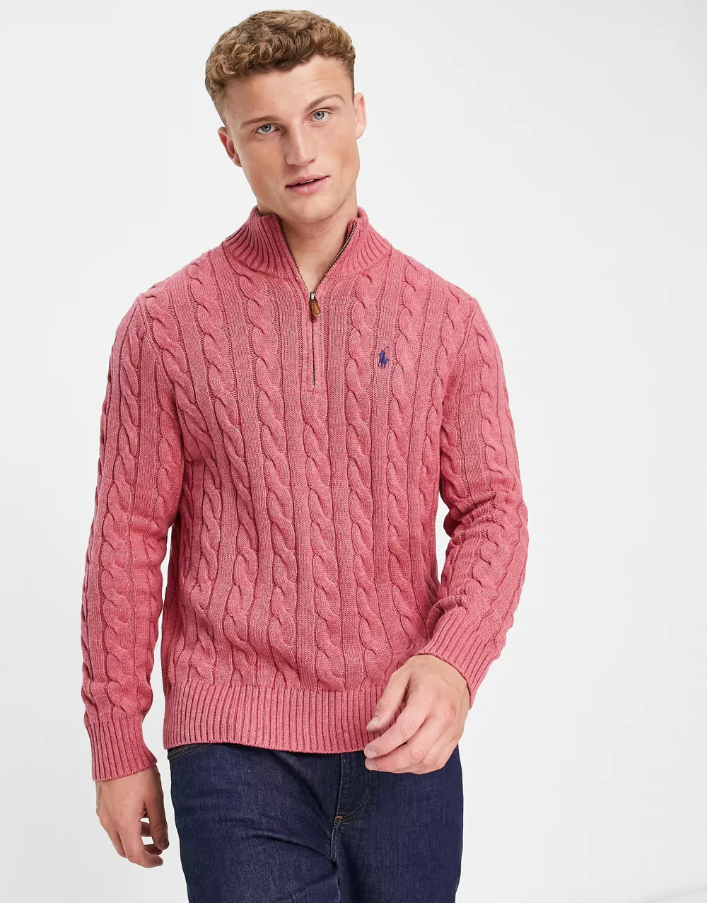 - Polo Ralph Lauren icon logo cotton cable knit jumper in pink marl
