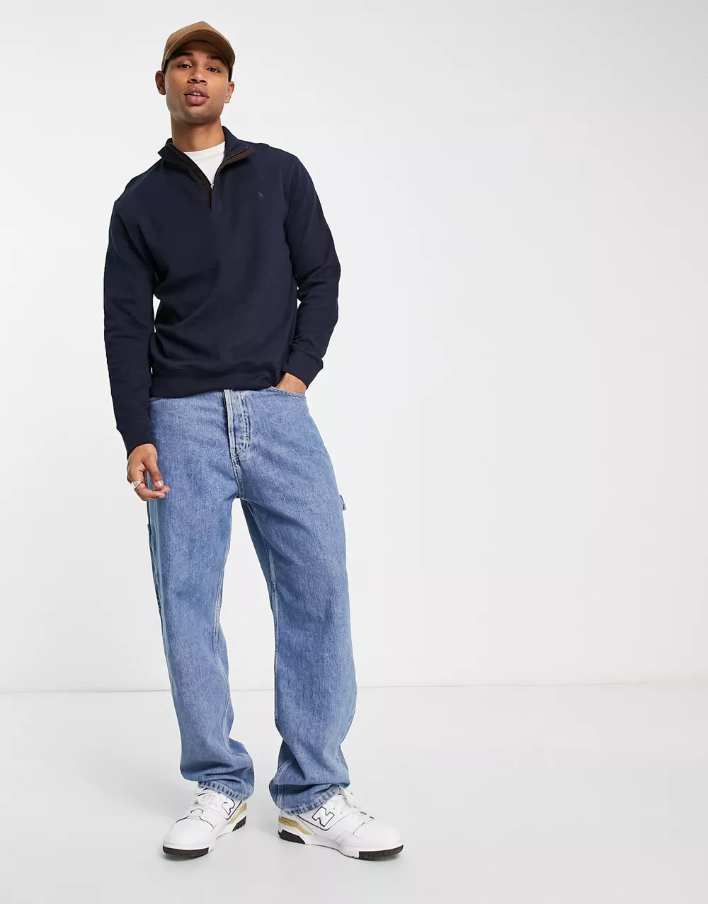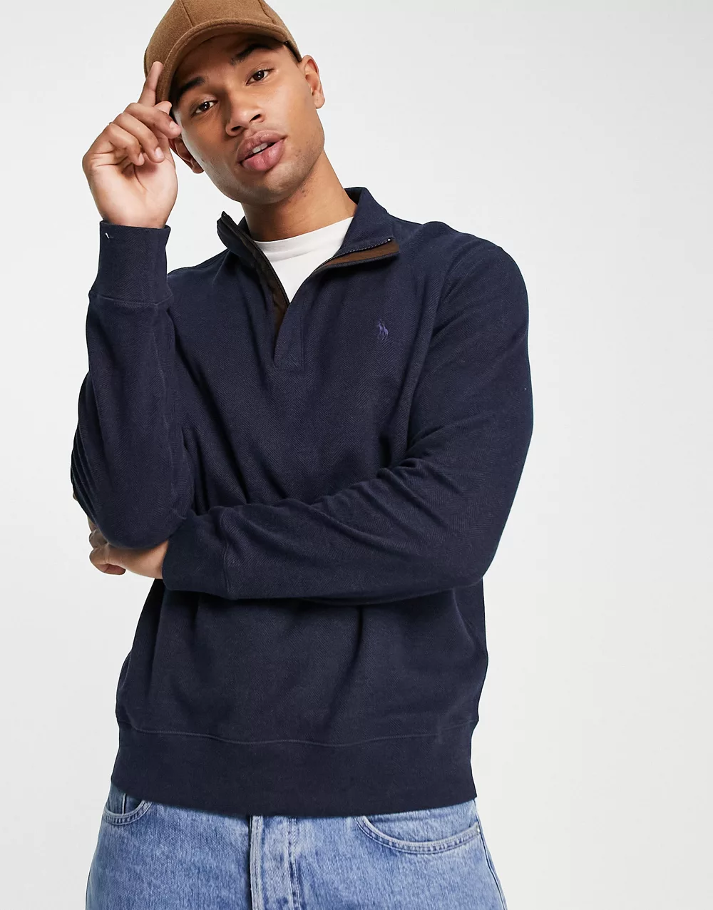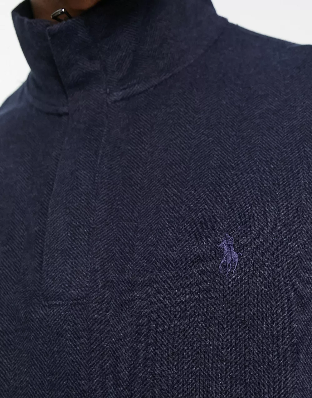 - Polo Ralph Lauren icon logo double knit suedette trim half zip sweatshirt in navy marl