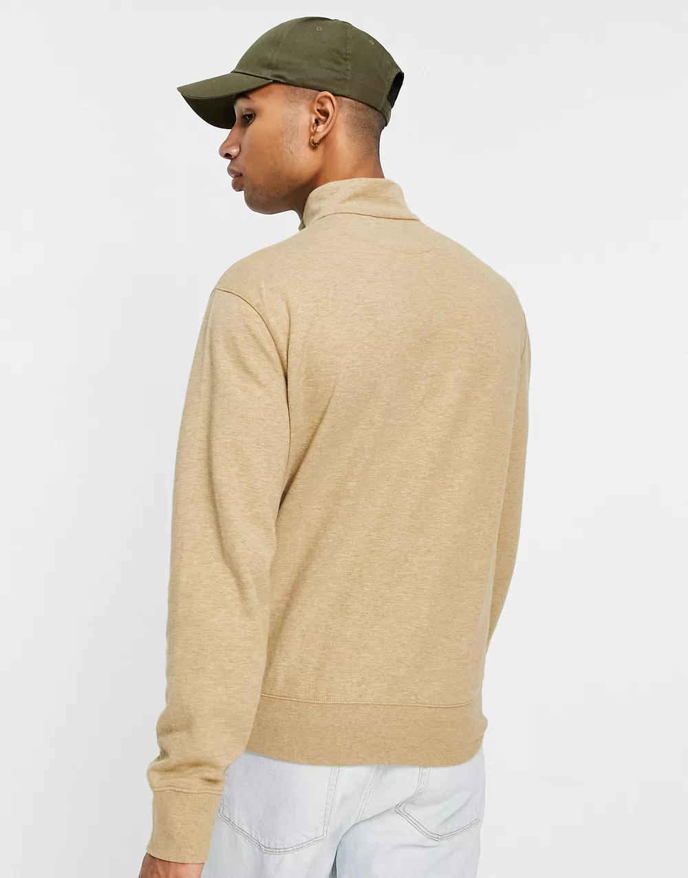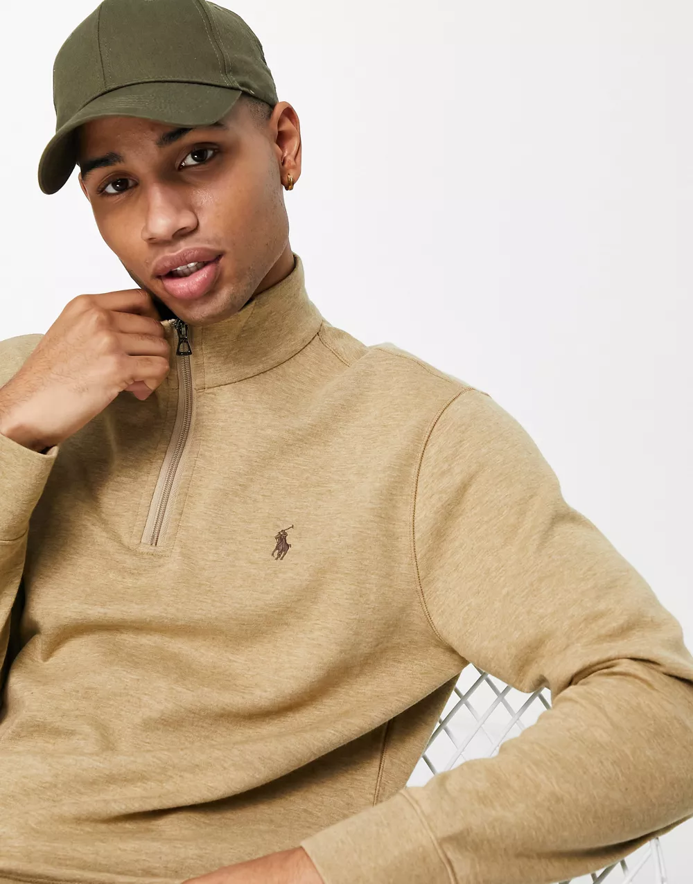 - Polo Ralph Lauren icon logo half zip sweatshirt in tan marl