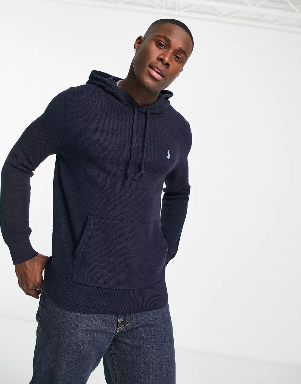 - Polo Ralph Lauren icon logo heavyweight cotton knit hooded jumper in navy marl