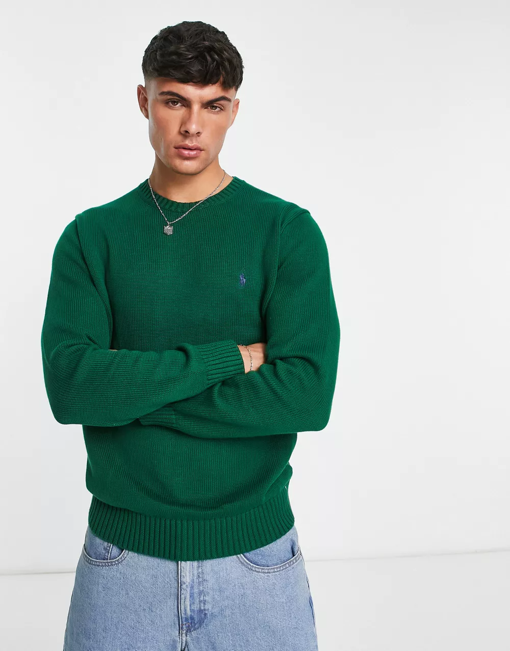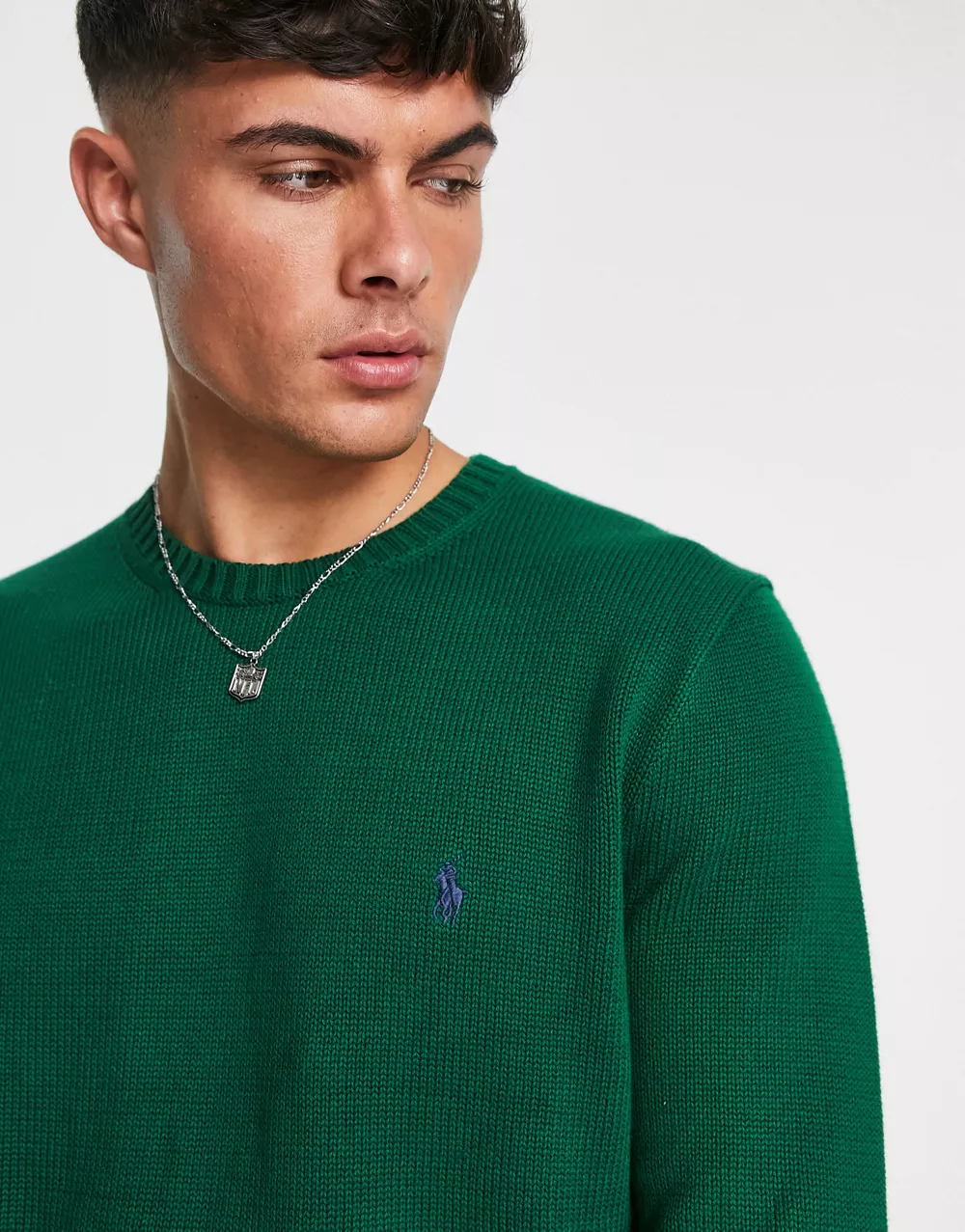 - Polo Ralph Lauren icon logo heavyweight cotton knit jumper in dark green