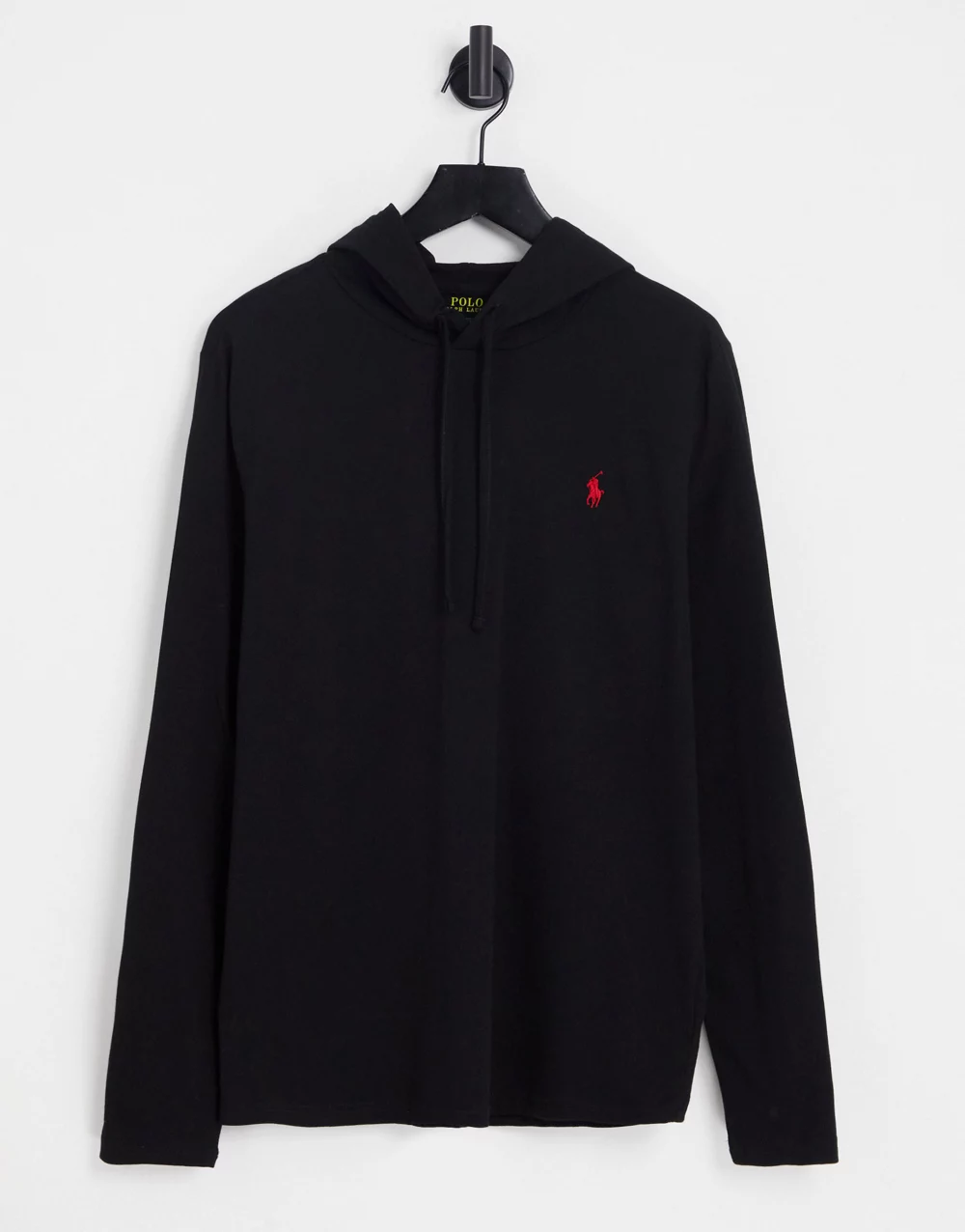 - Polo Ralph Lauren icon logo hooded long sleeve top in black
