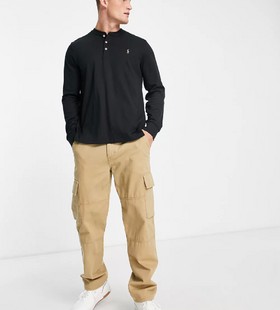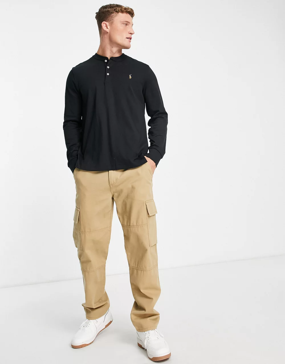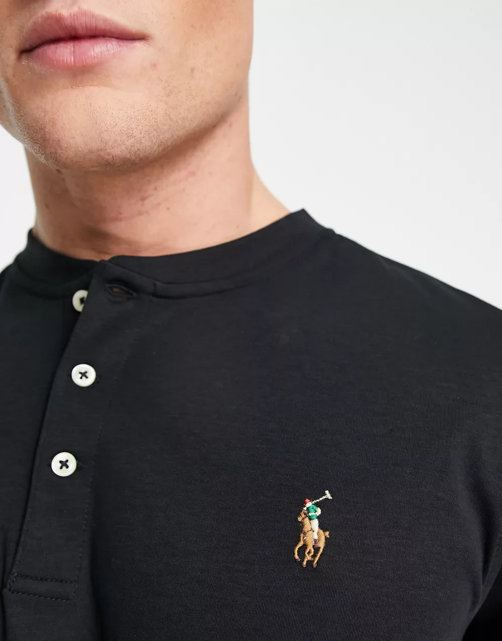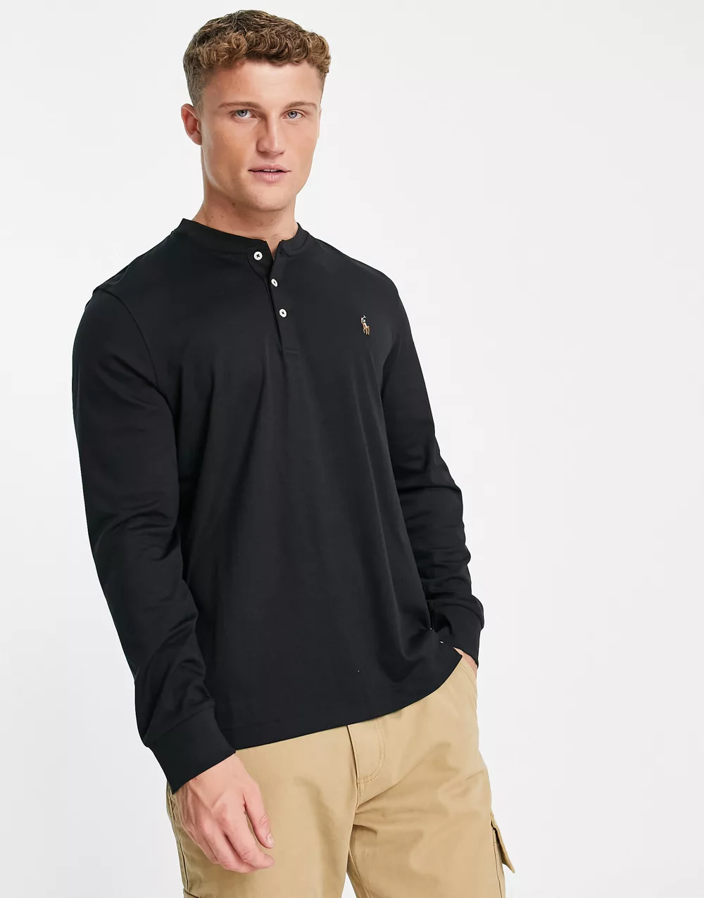 - Polo Ralph Lauren icon logo pima cotton henley long sleeve top in black