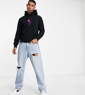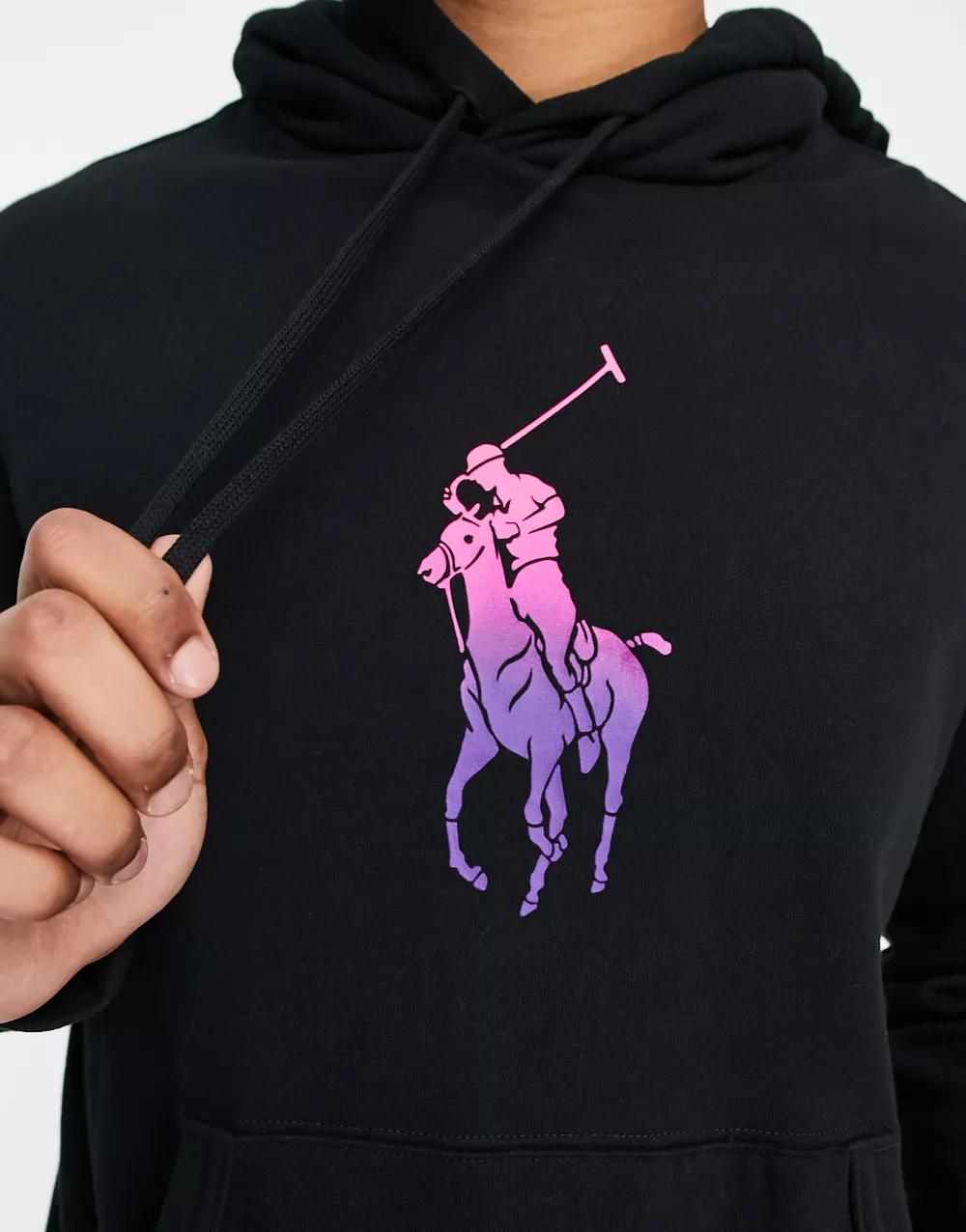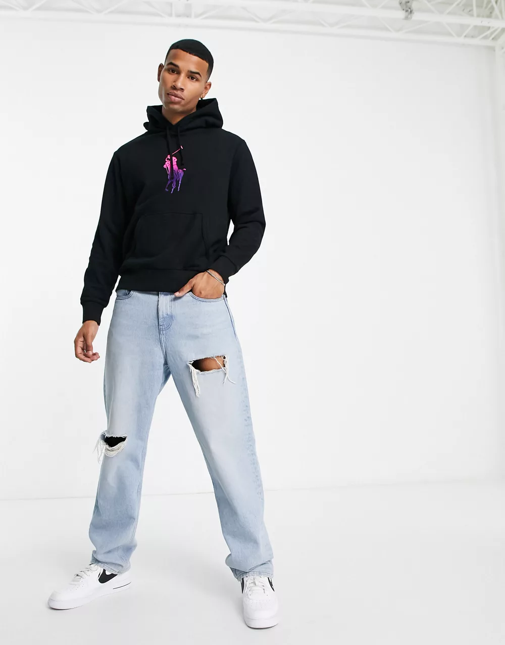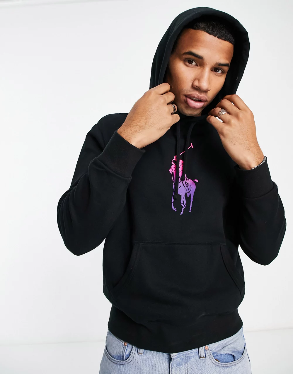 - Polo Ralph Lauren large ombre logo lightweight magic fleece hoodie in black