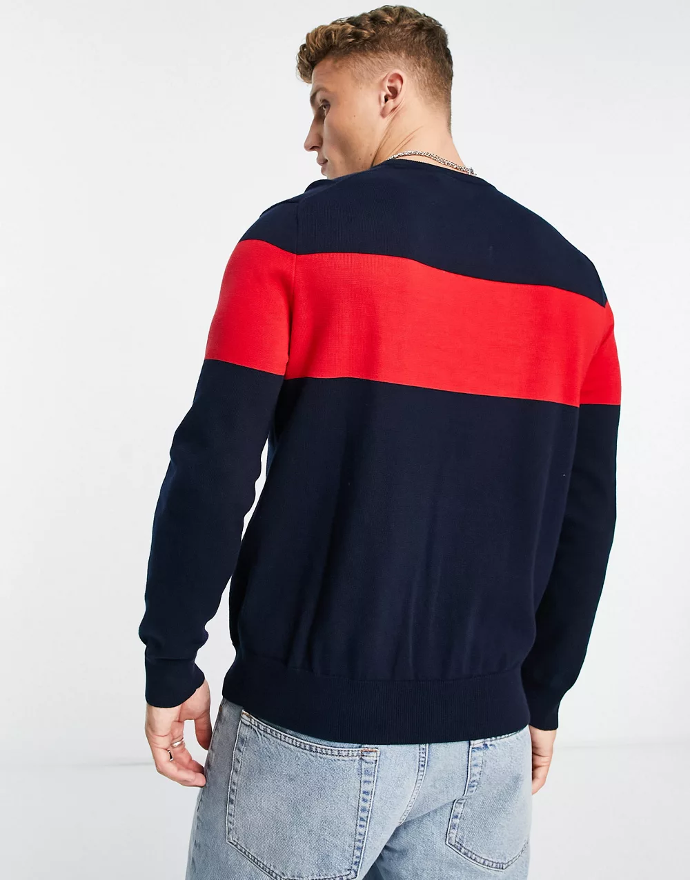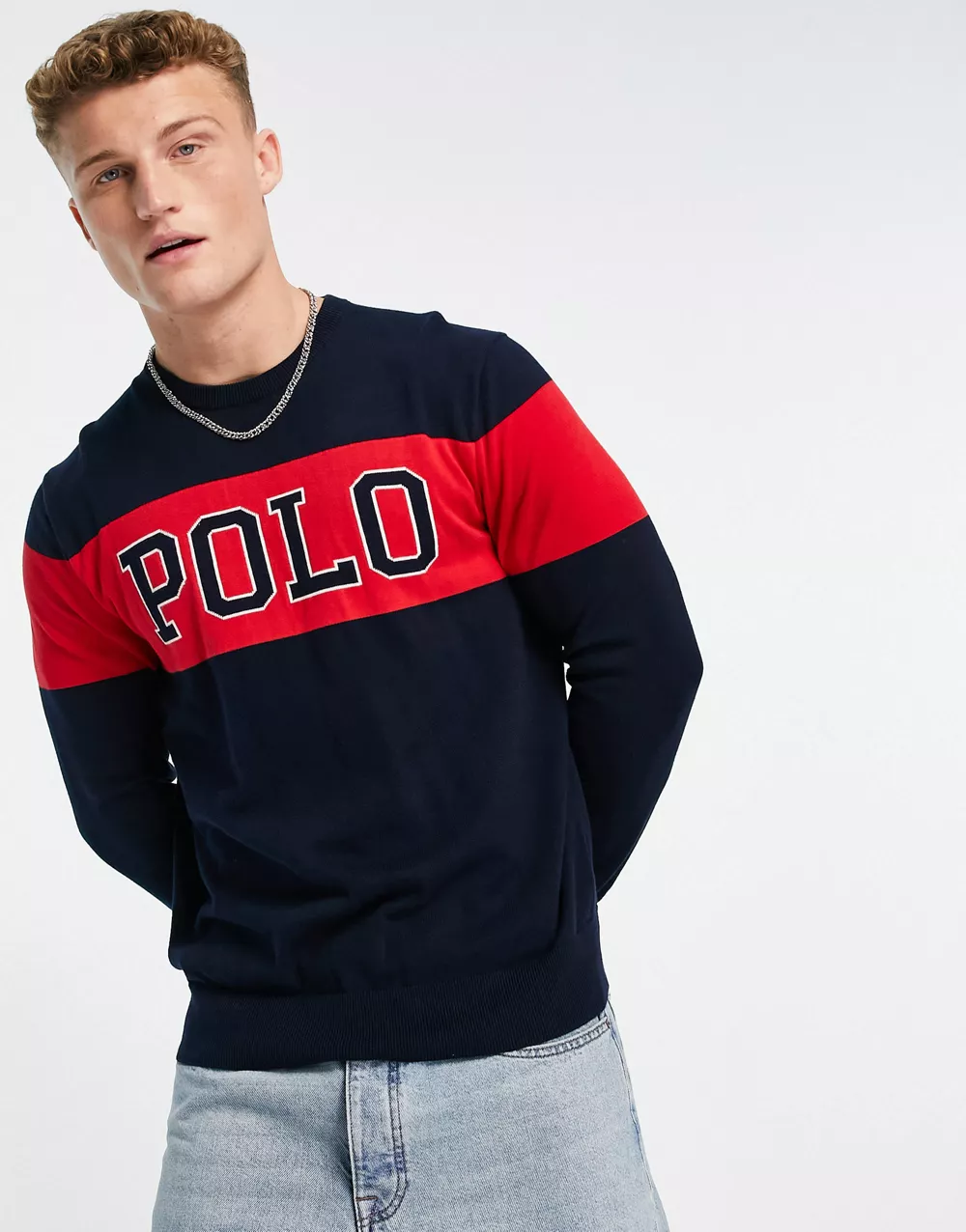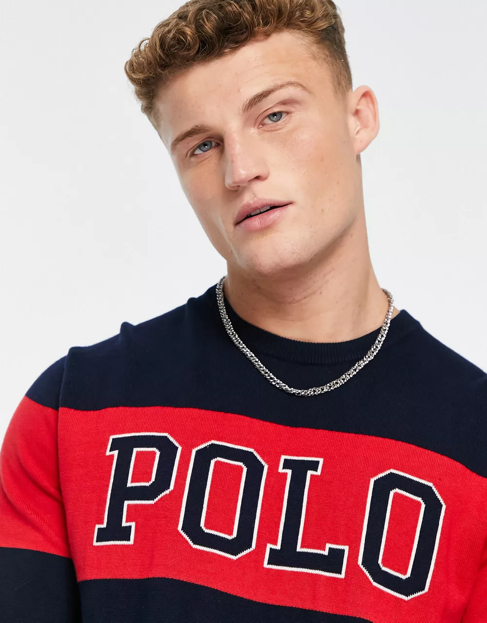 - Polo Ralph Lauren logo chest stripe heavy cotton knit jumper in navy