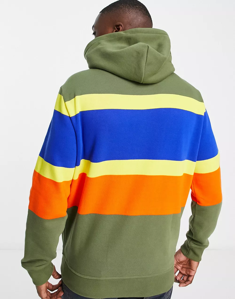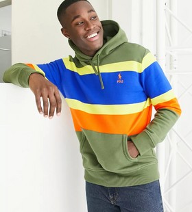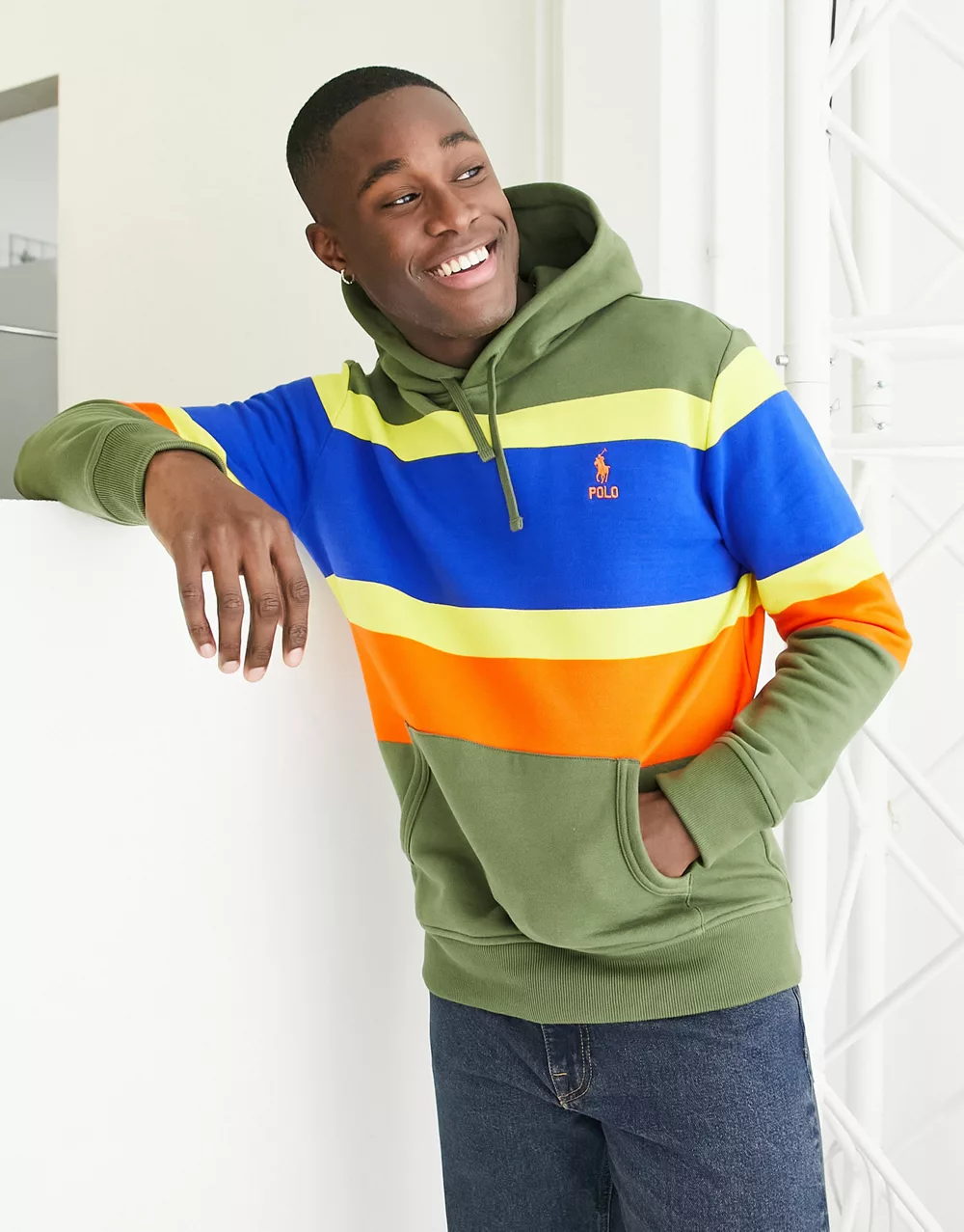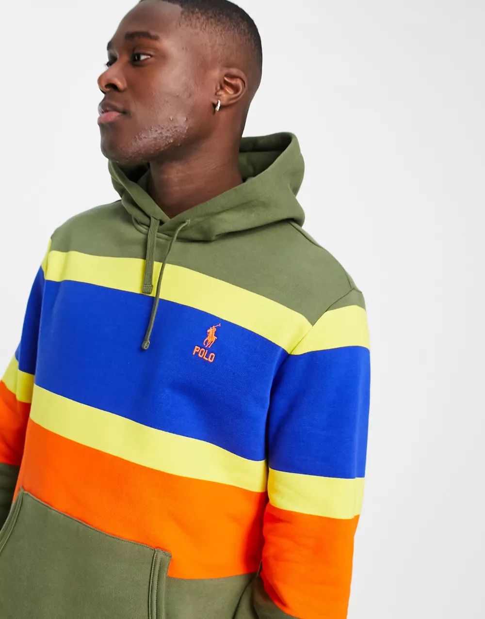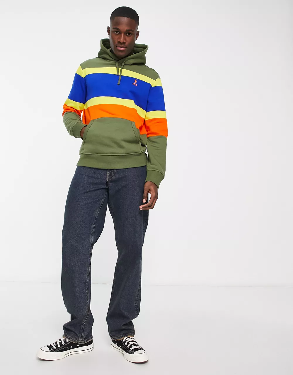 - Polo Ralph Lauren logo stripe hoodie in dark green multi