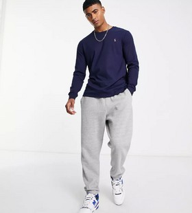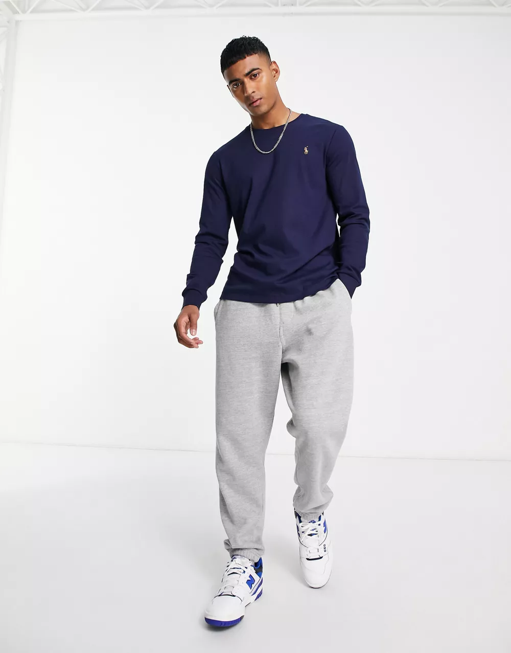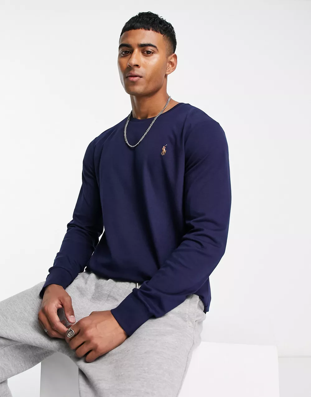 - Polo Ralph Lauren multi icon logo pima cotton long sleeve top in navy