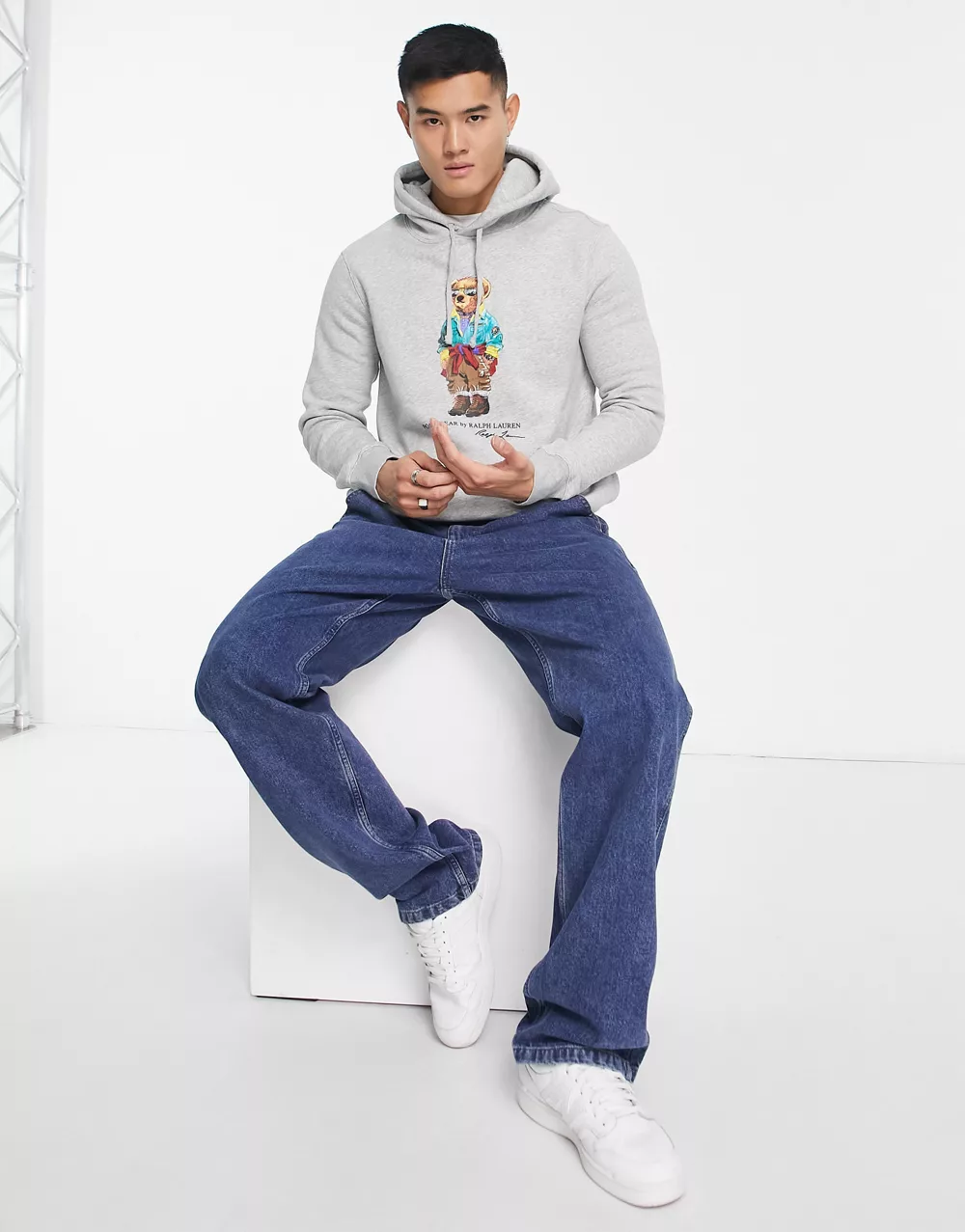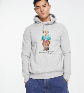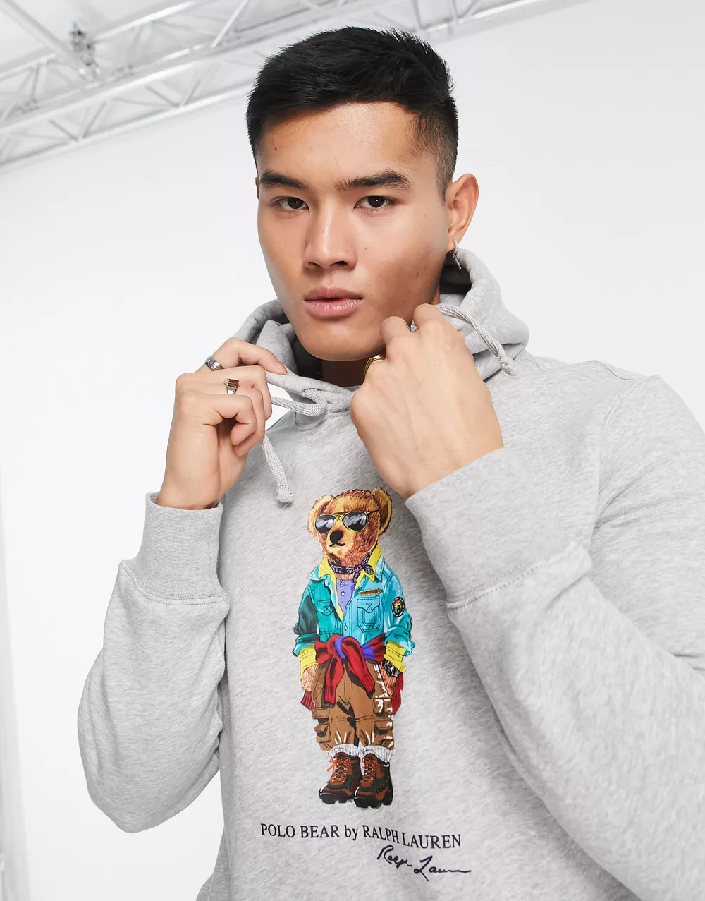 - Polo Ralph Lauren outdoor bear print hoodie in grey marl