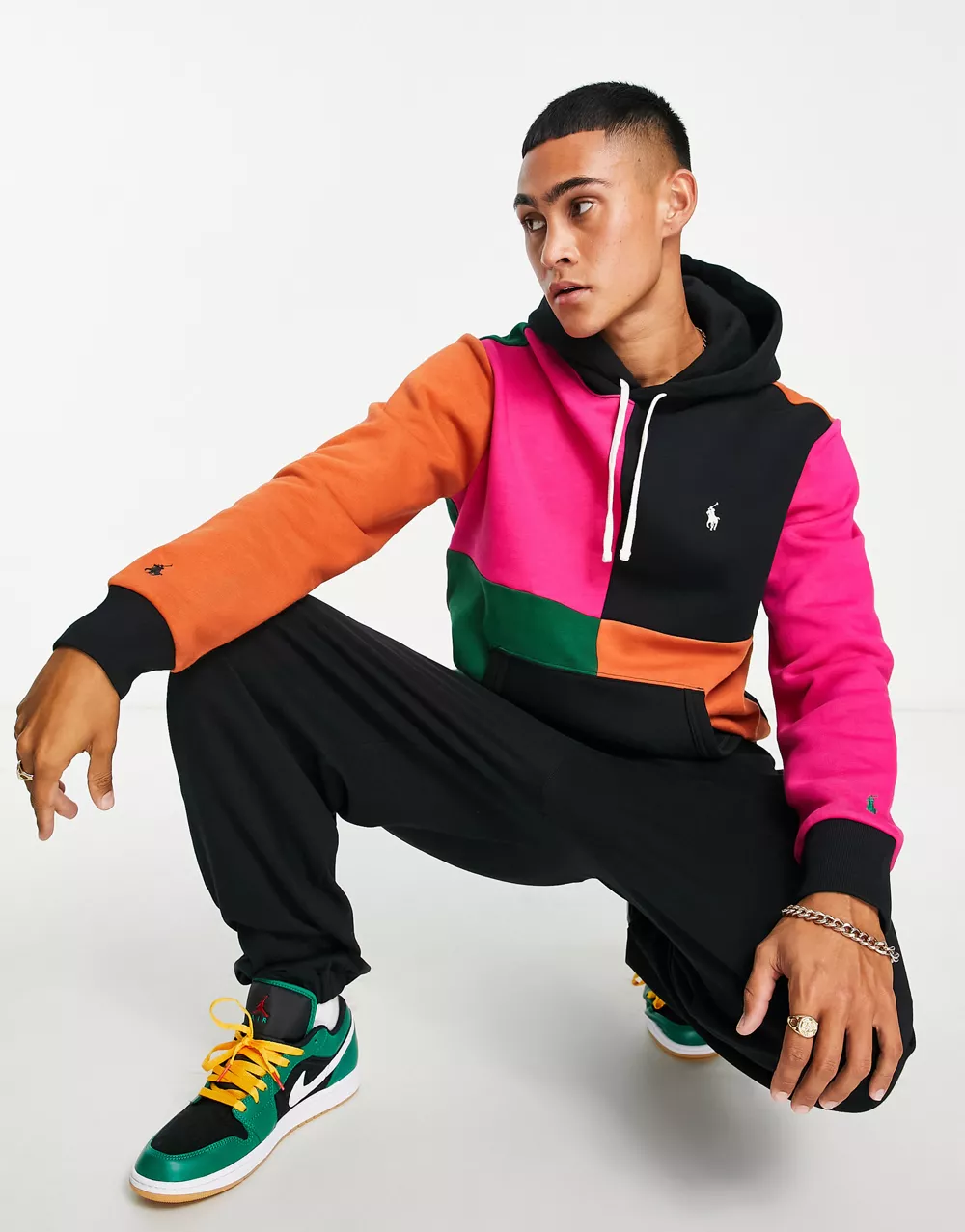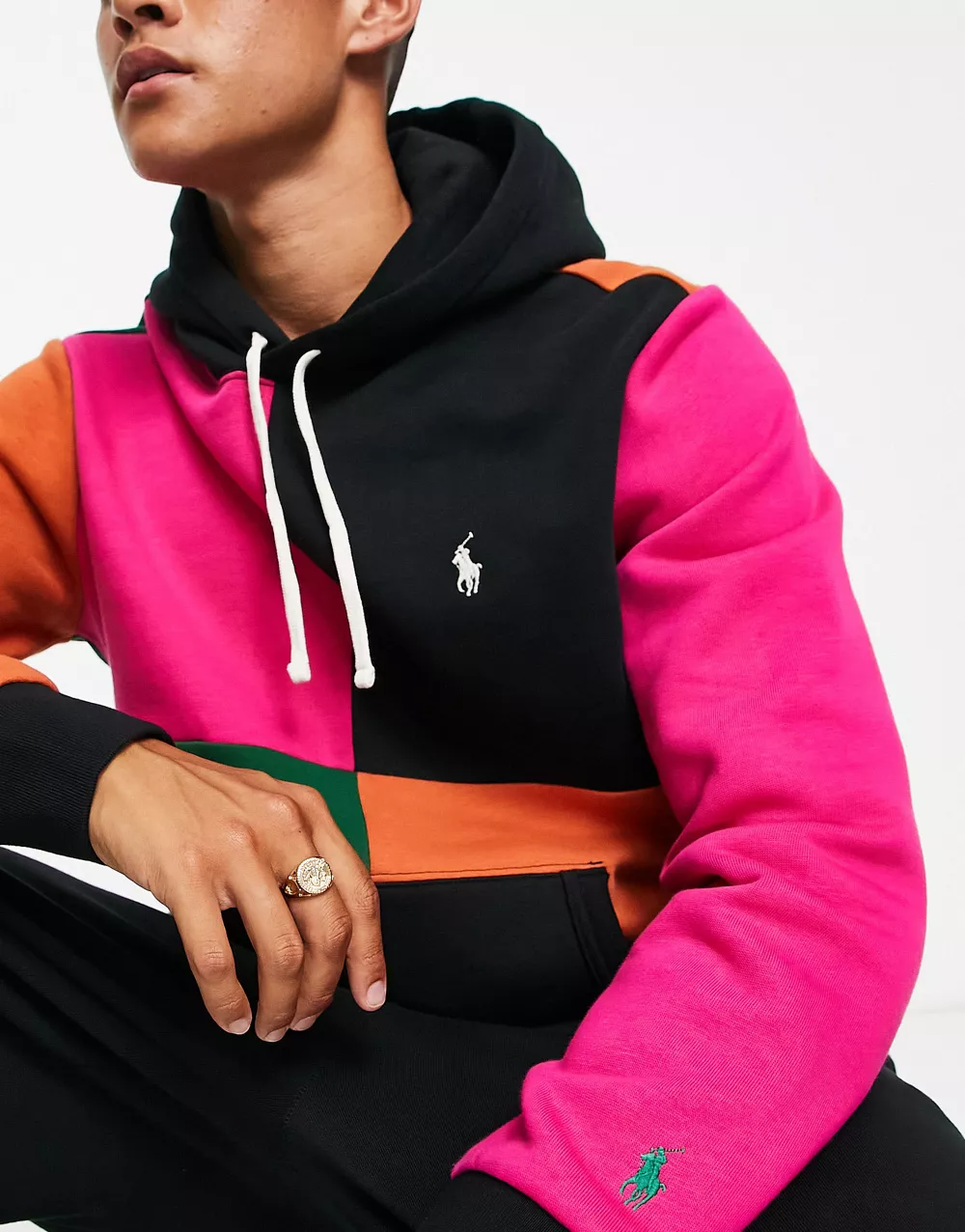 - Polo Ralph Lauren x ASOS exclusive collab hoodie in pink colour block with logo