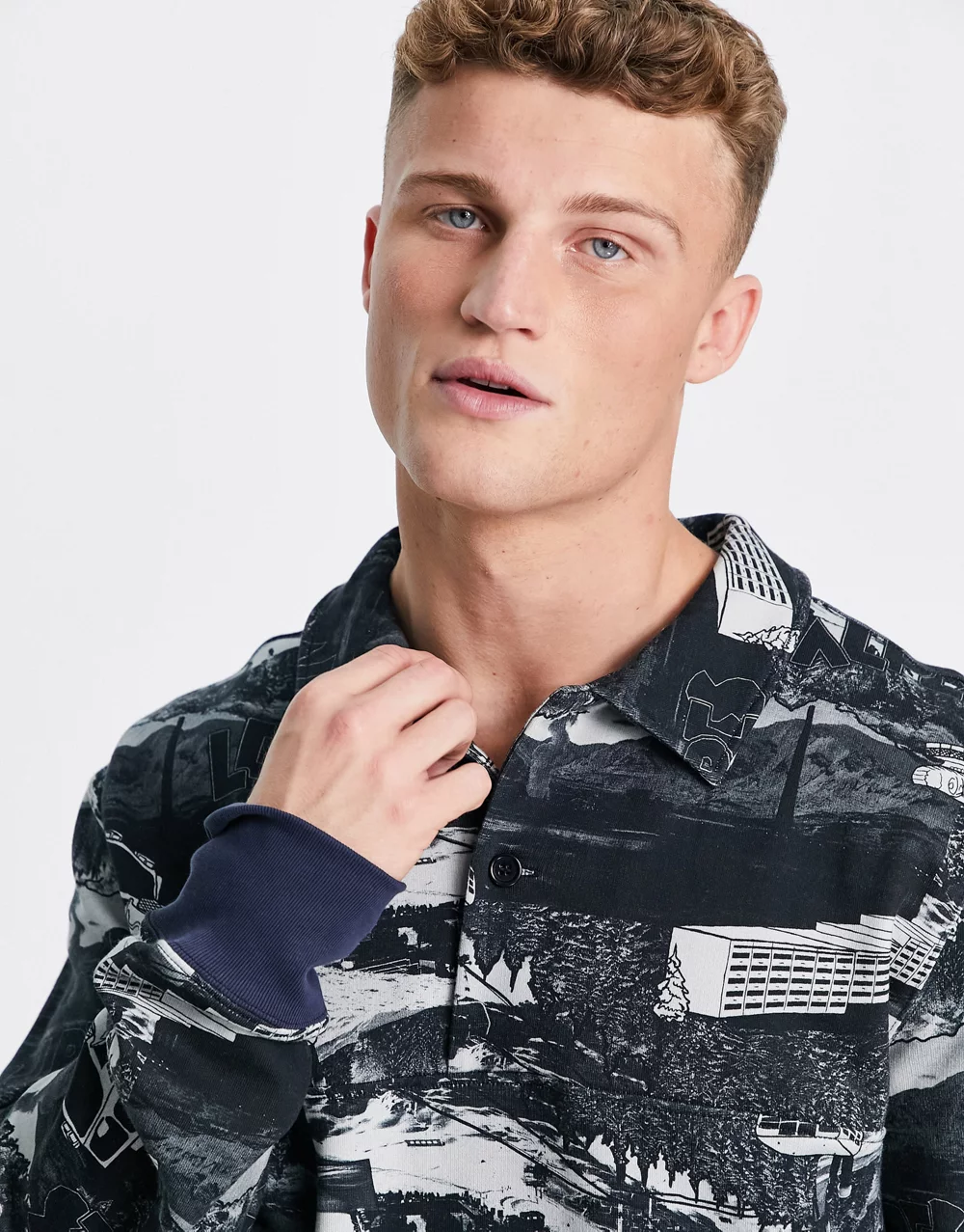 - PS Paul Smith polo style sweatshirt in navy with all over alpes print
