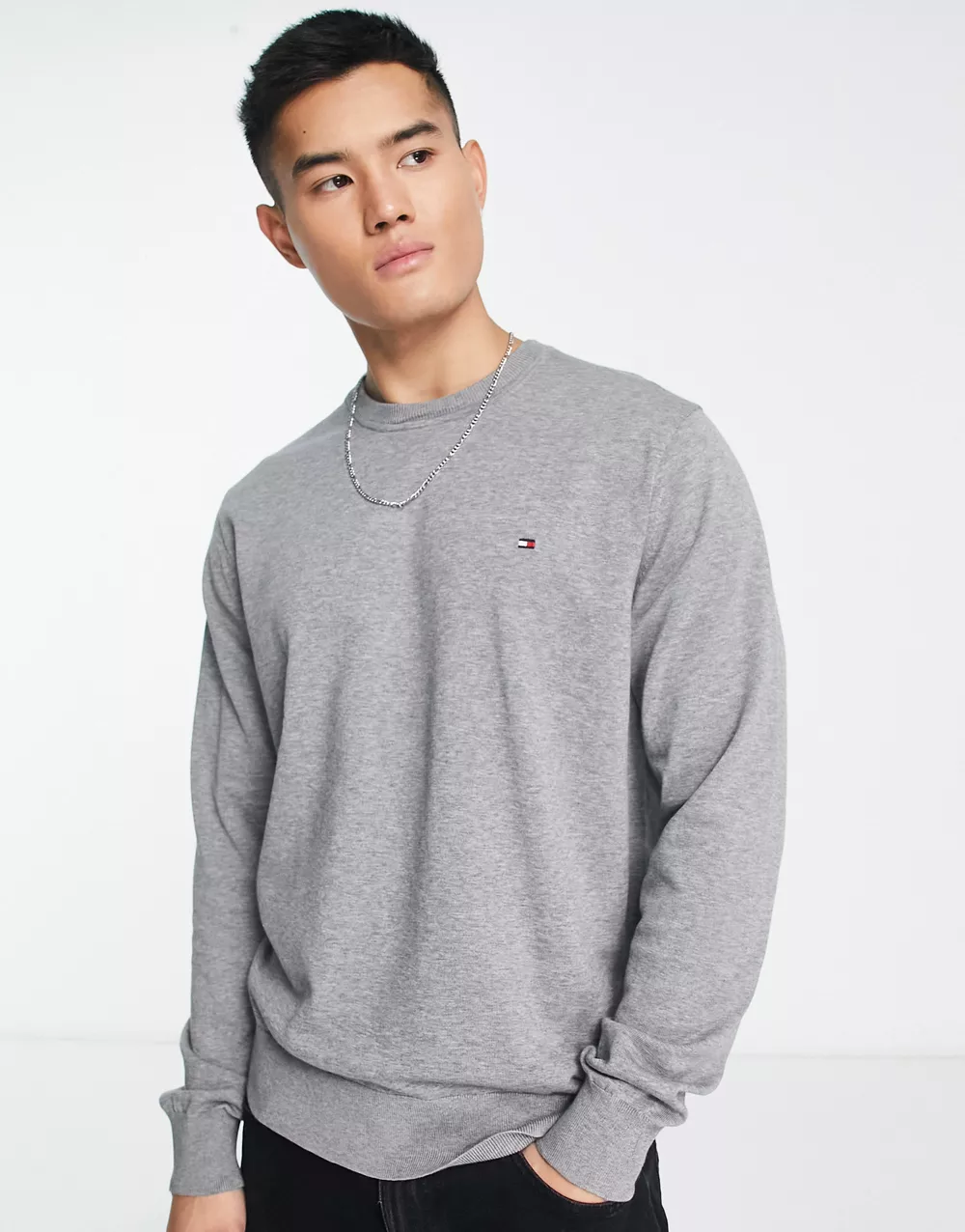Tommy Hilfiger cotton blend varsity applique logo knit jumper in navy
