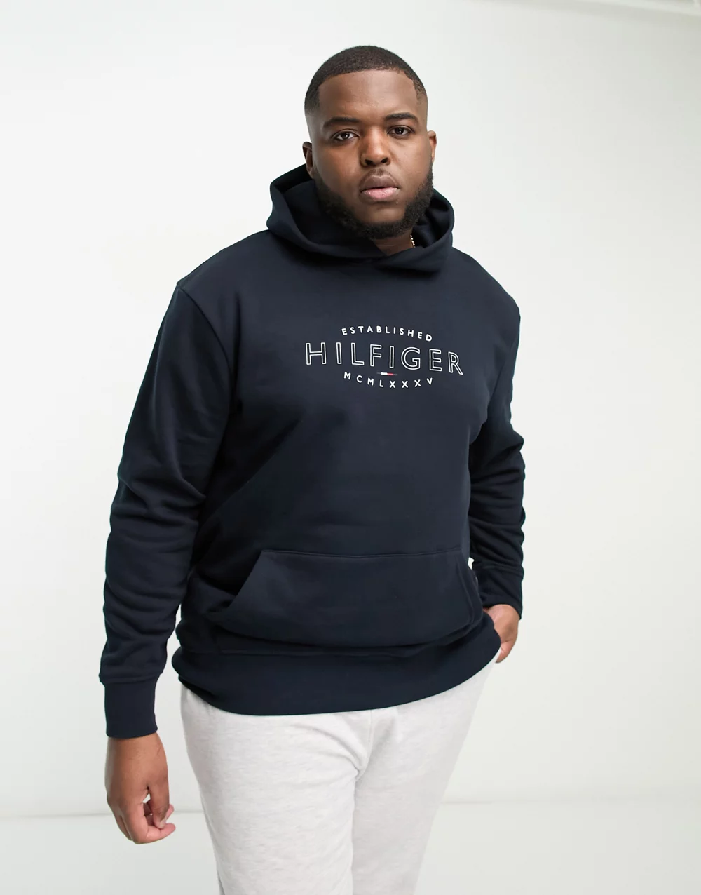- Tommy Hilfiger Big & Tall curve logo hoodie in navy