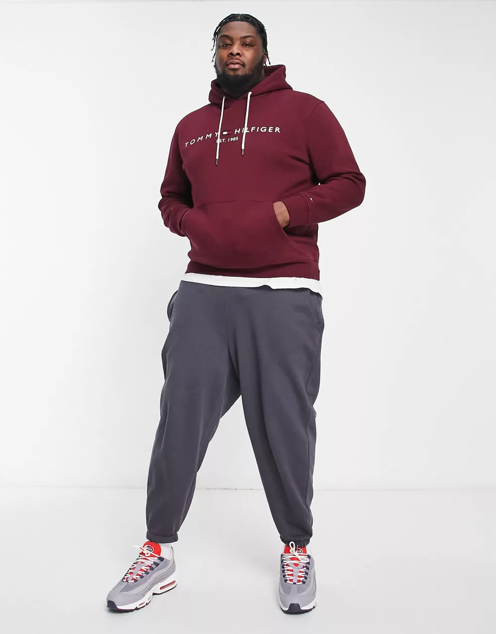 - Tommy Hilfiger Big & Tall embroidered logo cotton blend hoodie in burgundy