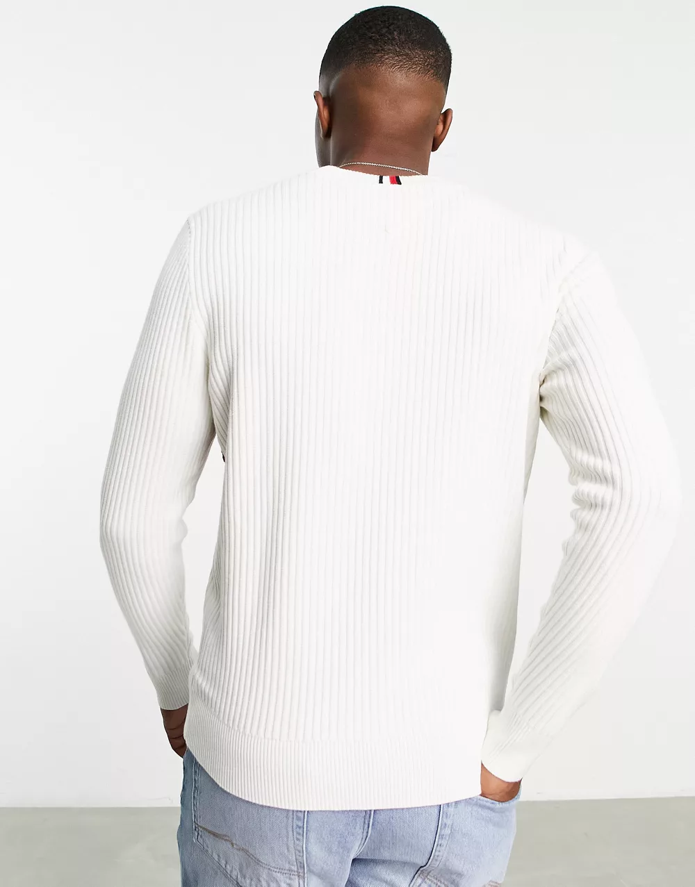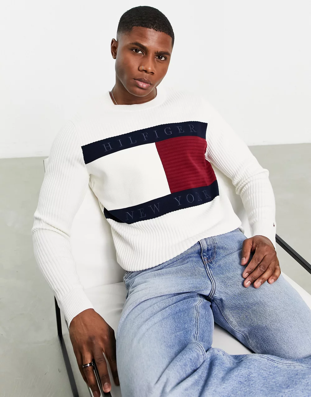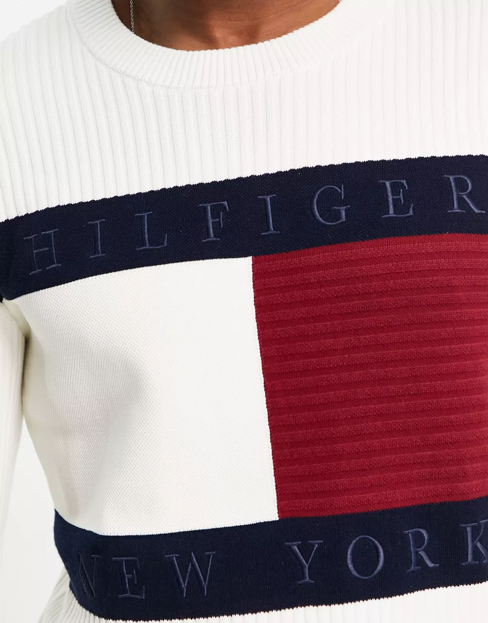 - Tommy Hilfiger cotton blend large flag logo knit jumper in ivory