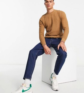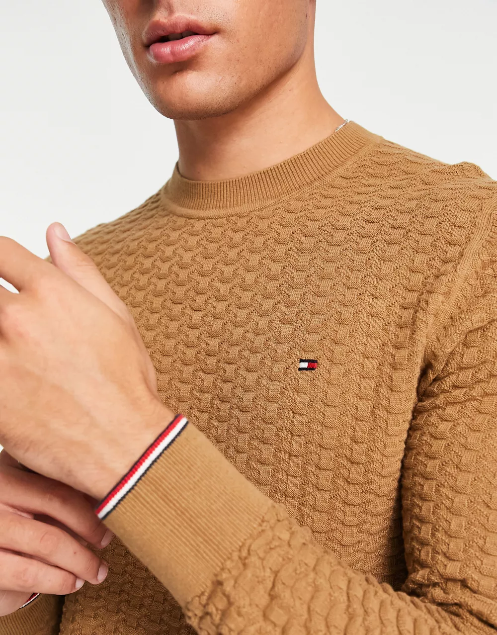 - Tommy Hilfiger flag logo exaggerated structure knit jumper in khaki tan