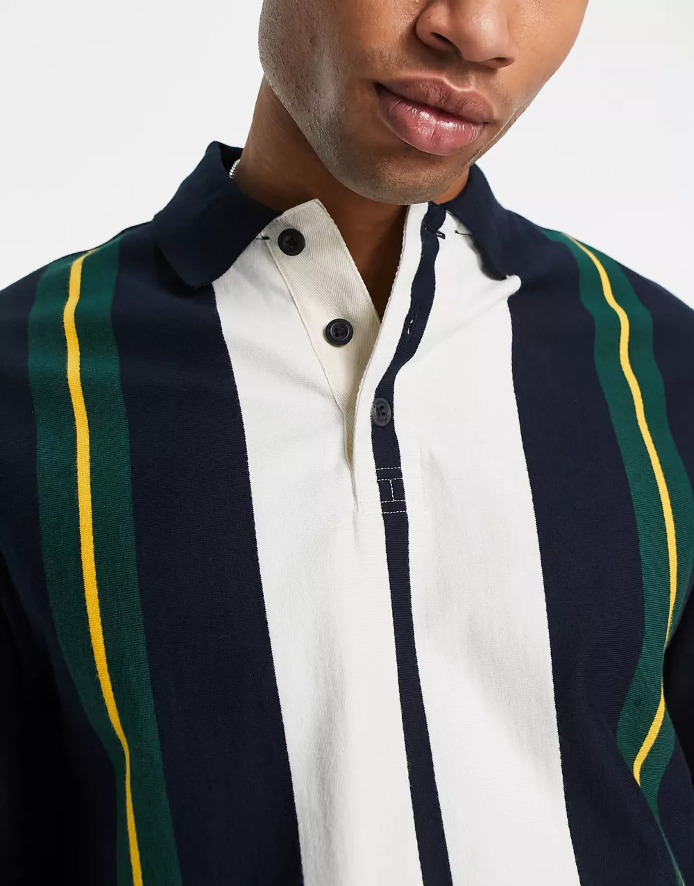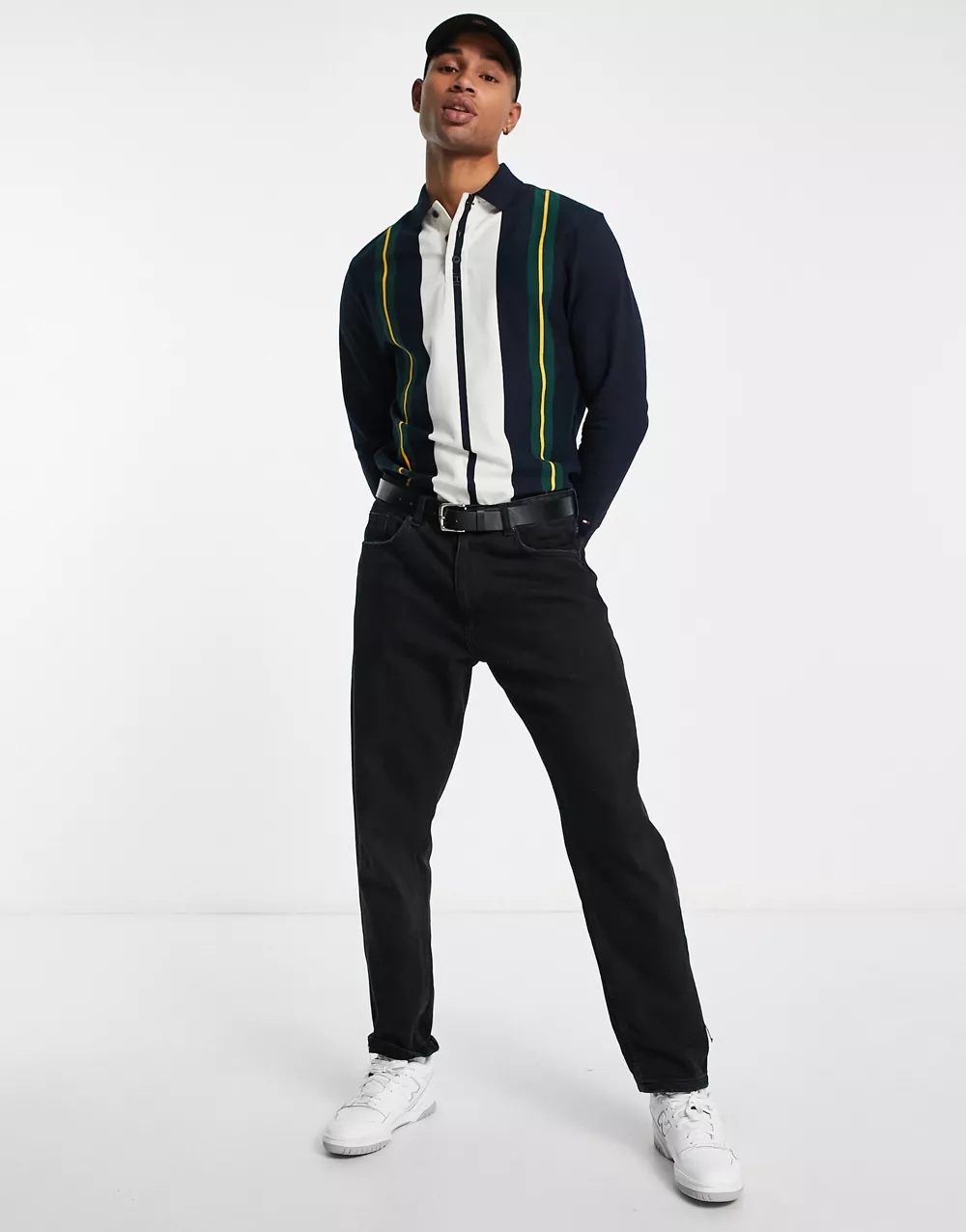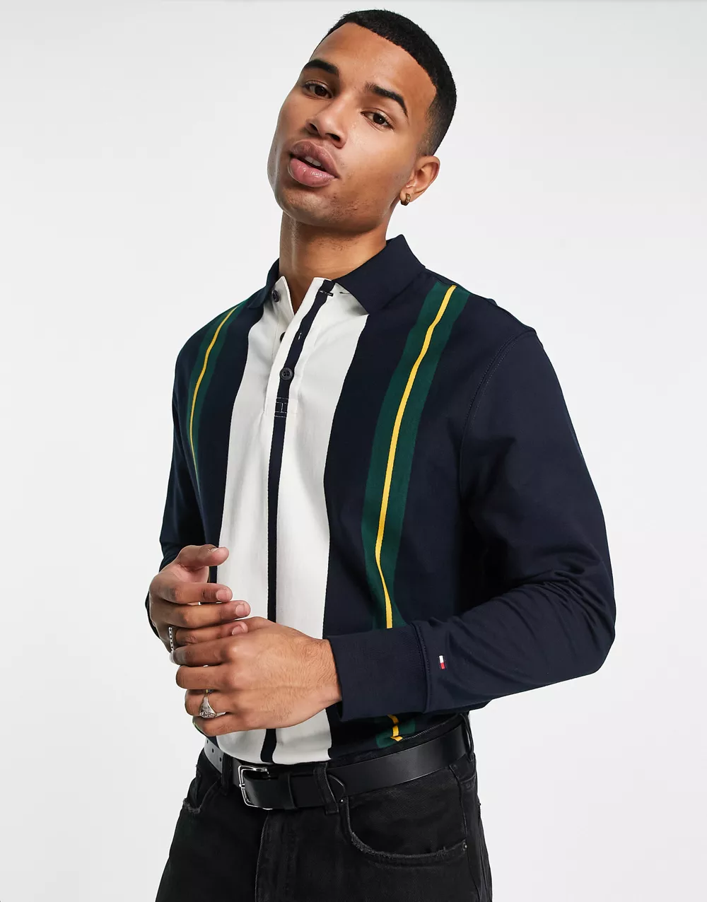 - Tommy Hilfiger icon stripe long sleeve rugby top in black
