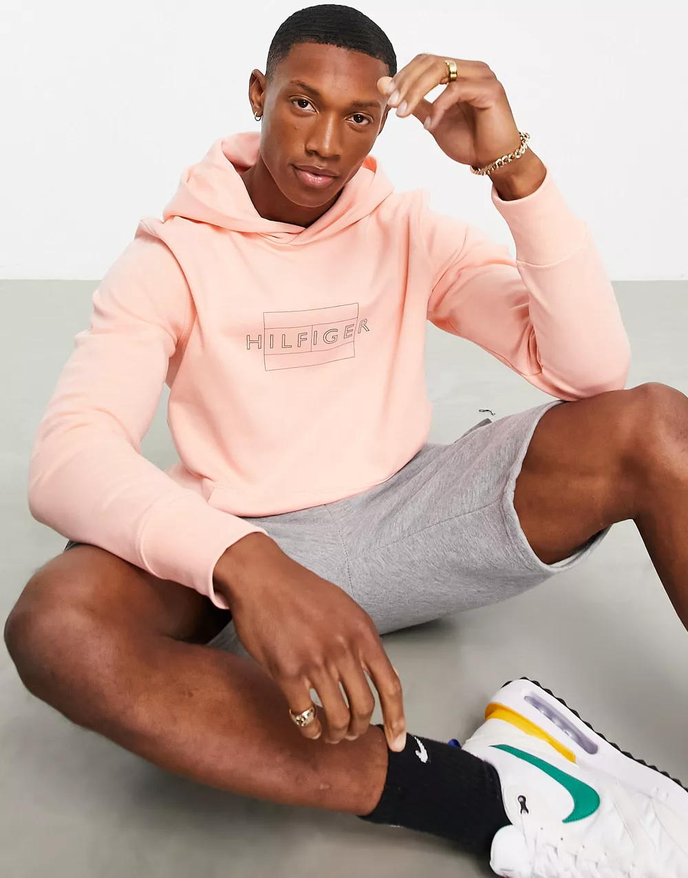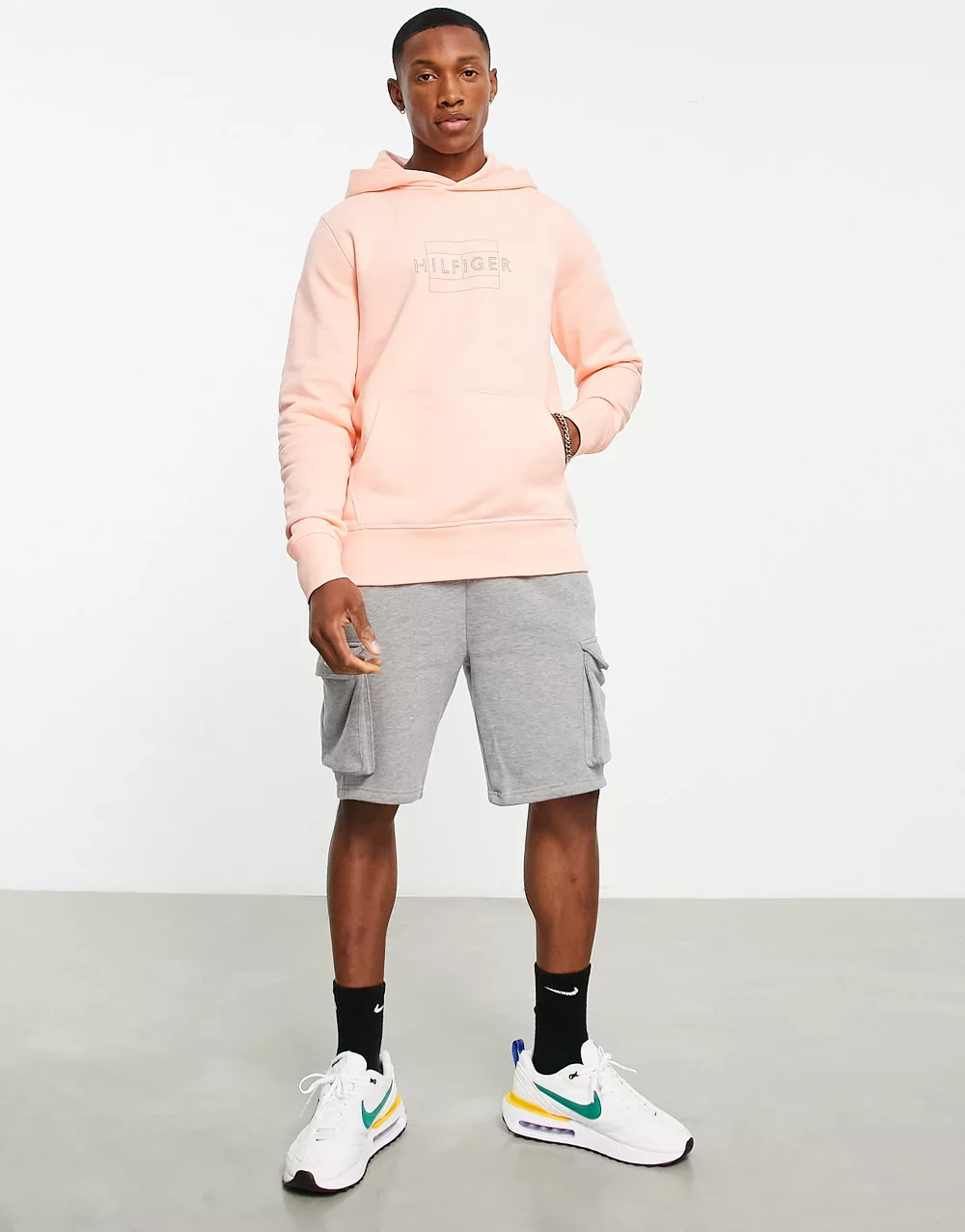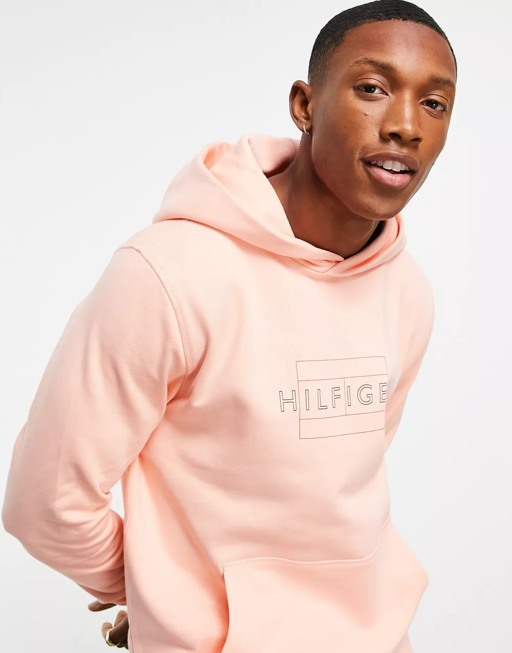 - Tommy Hilfiger linear flag logo hoodie in pink