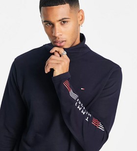 - Tommy Hilfiger loungewear half-zip sweatshirt in navy co-ord