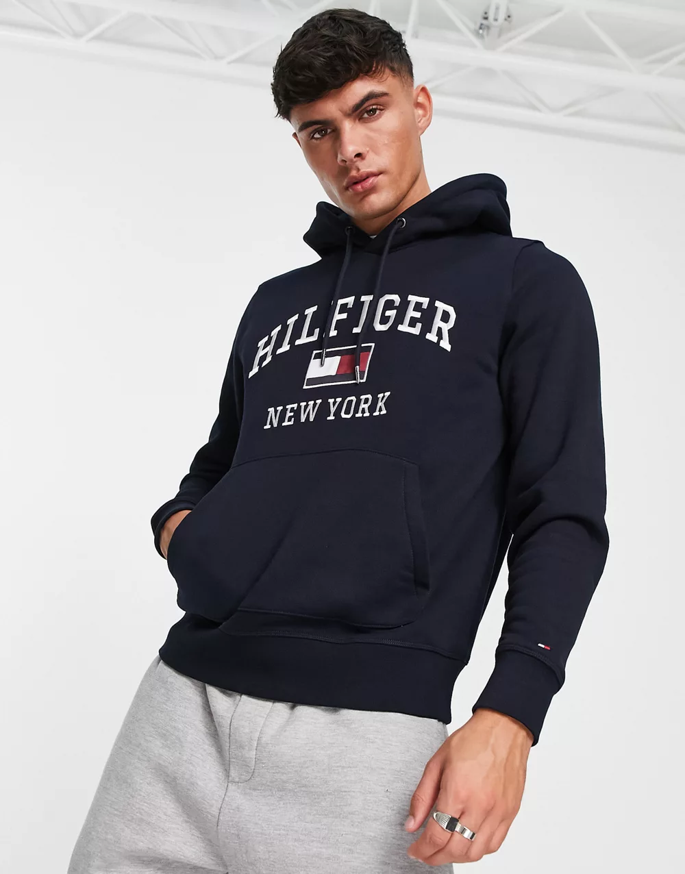 - Tommy Hilfiger modern varsity logo cotton blend hoodie in navy