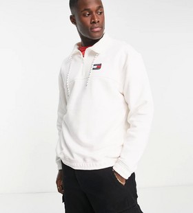 - Tommy Jeans ASOS exclusive heritage capsule back logo half zip sweatshirt relaxed fit in off white