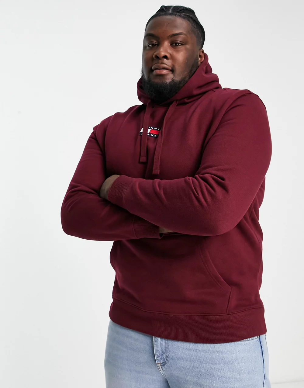 - Tommy Jeans Big & Tall badge hoodie in burgundy