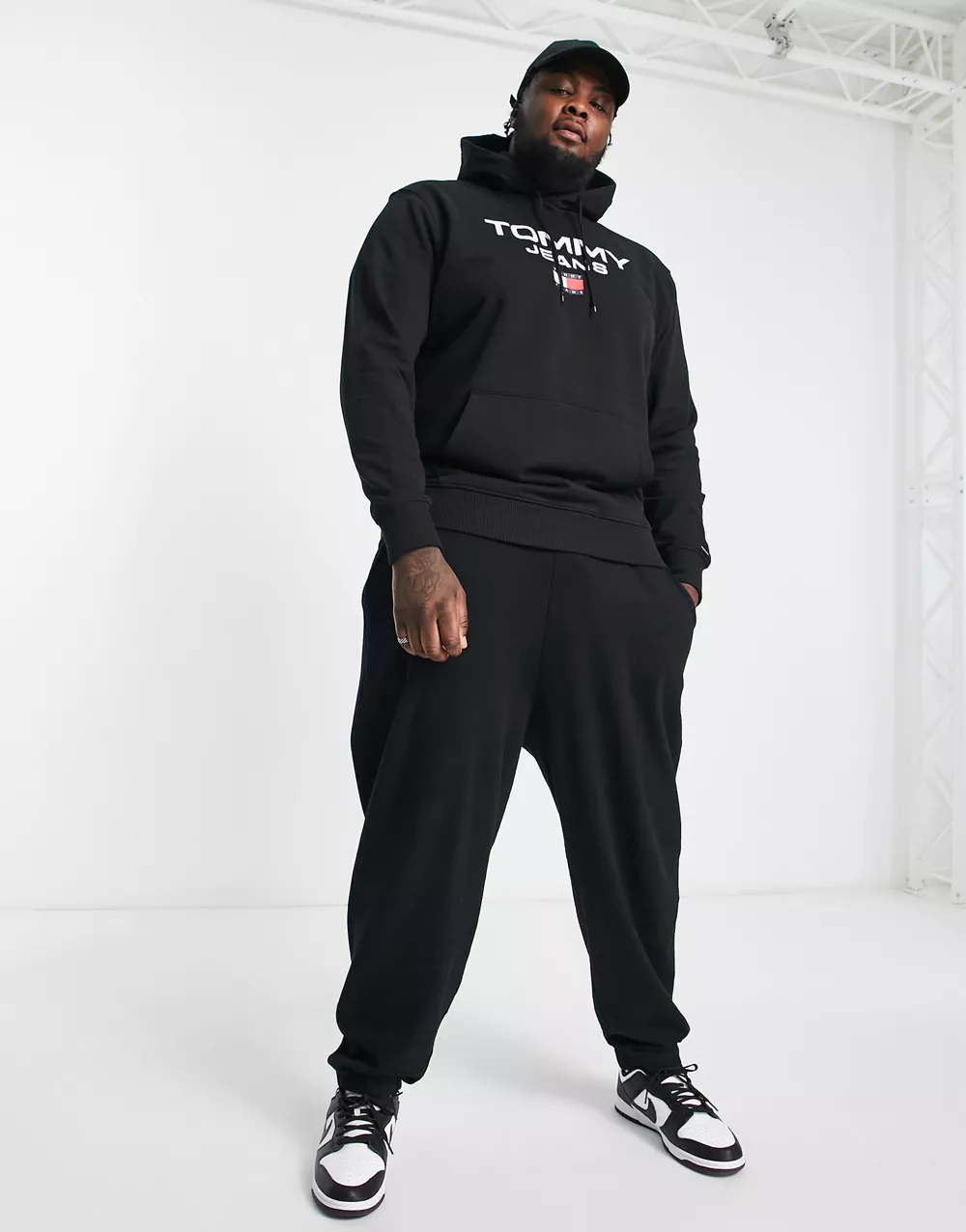 - Tommy Jeans Big & Tall flag logo hoodie in black