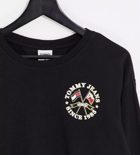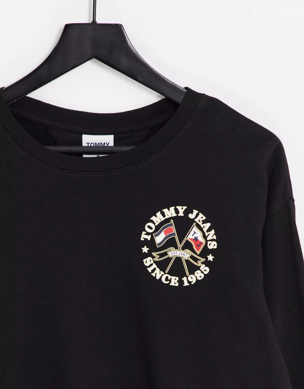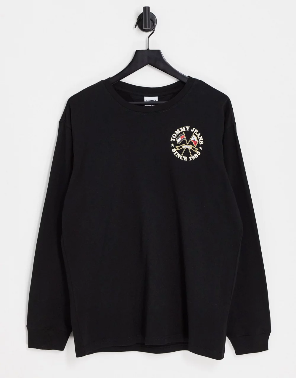 - Tommy Jeans classic fit modern prep back logo long sleeve top in black