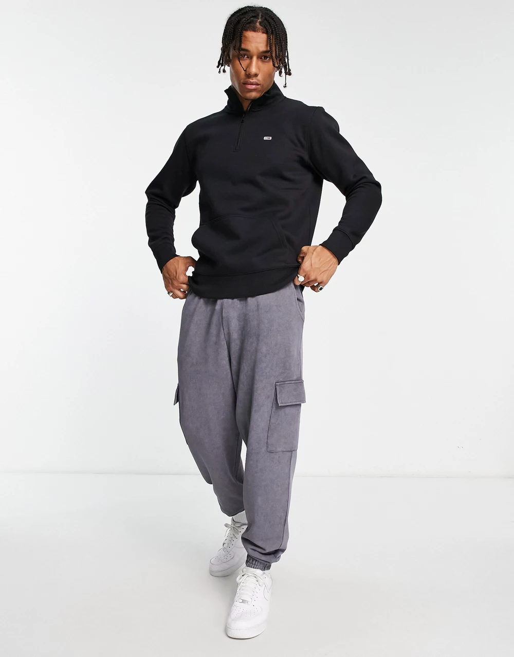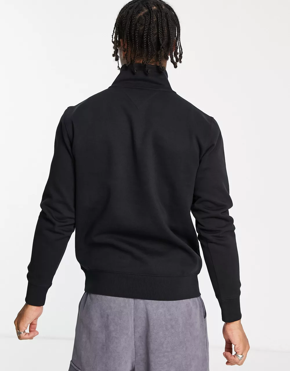 - Tommy Jeans flag logo fleece half zip sweatshirt in black