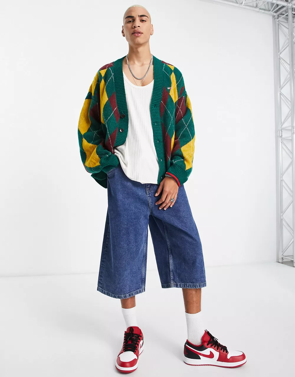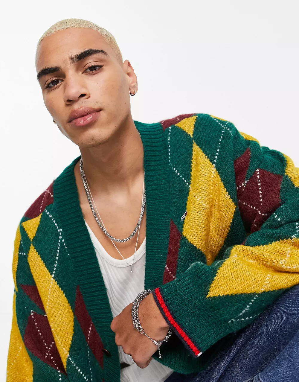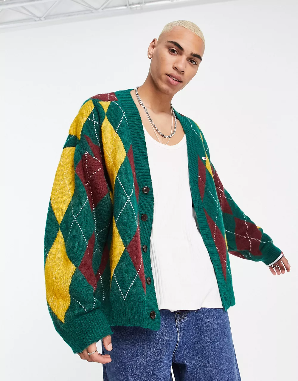 - Tommy Jeans relaxed fit argyle knit cardigan in green