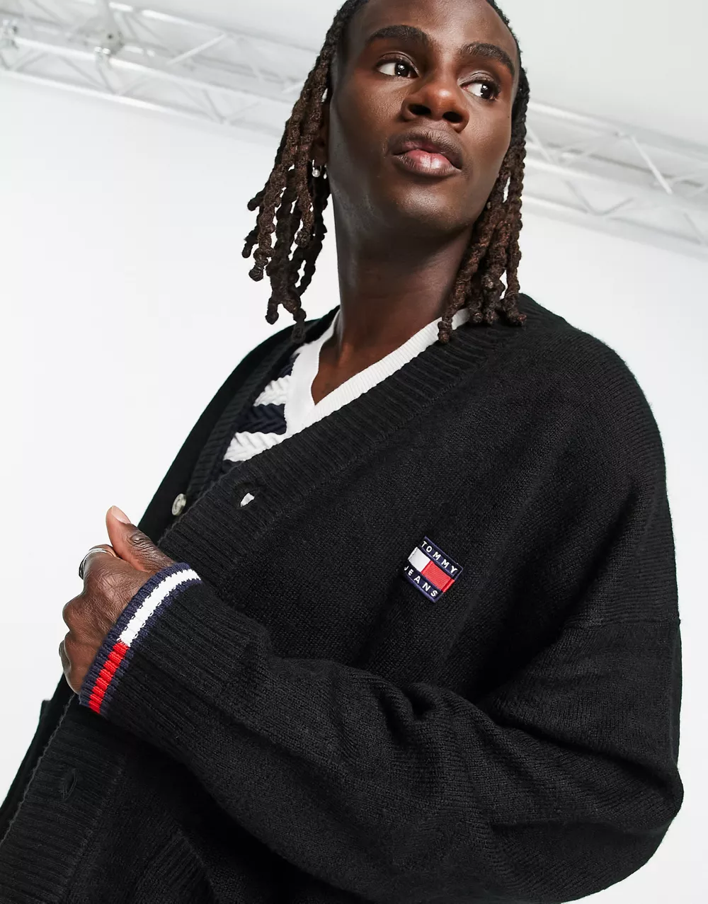 - Tommy Jeans skater fit badge logo knit cardigan in black