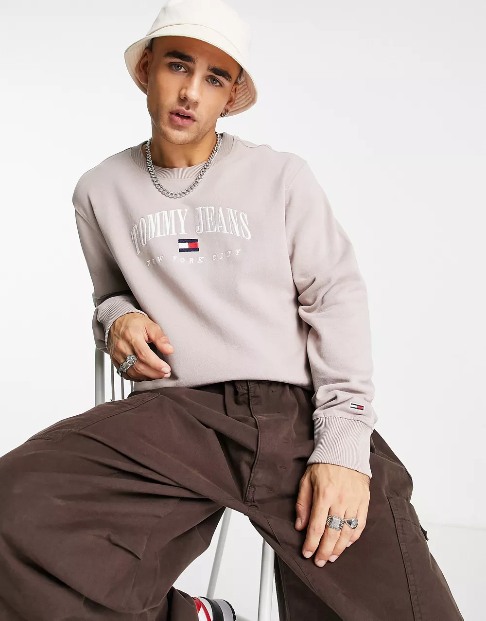 - Tommy Jeans small varsity logo sweatshirt in stone