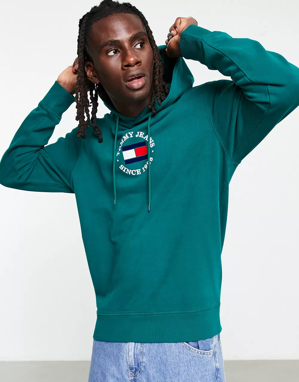 - Tommy Jeans timeless logo hoodie in washed green