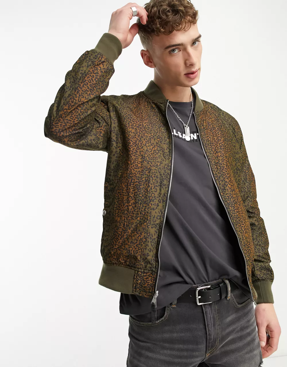 - AllSaints Bassett Leo reversible bomber jacket black/khaki