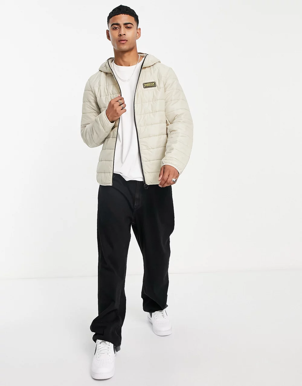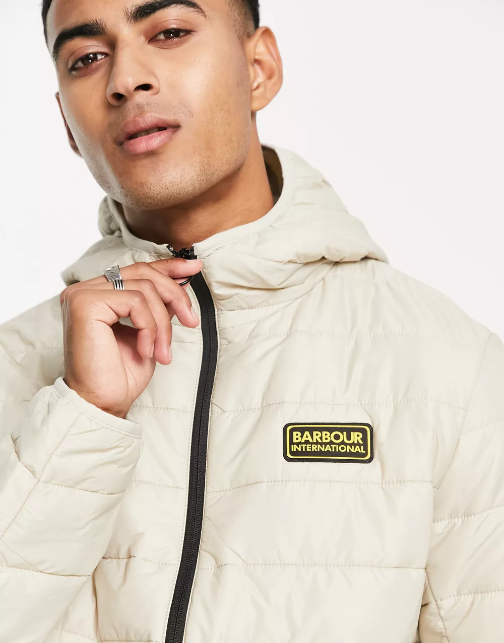 - Barbour International reed hooded quilted jacket in beige