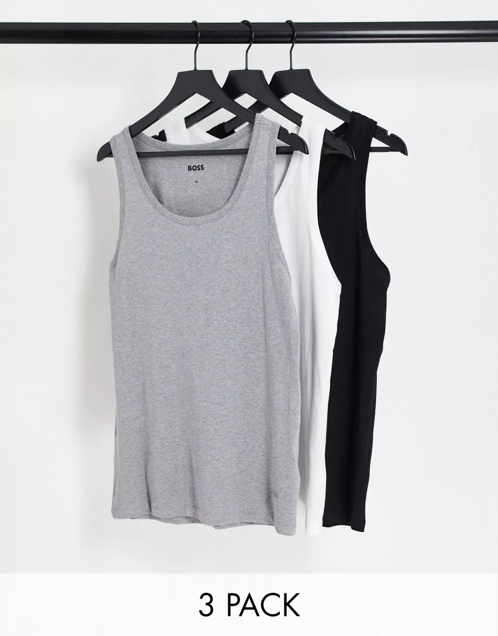 - BOSS Bodywear 3 pack of vests in white/grey/black