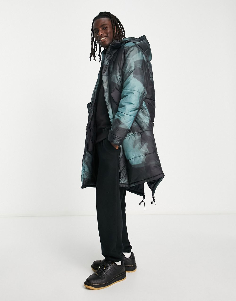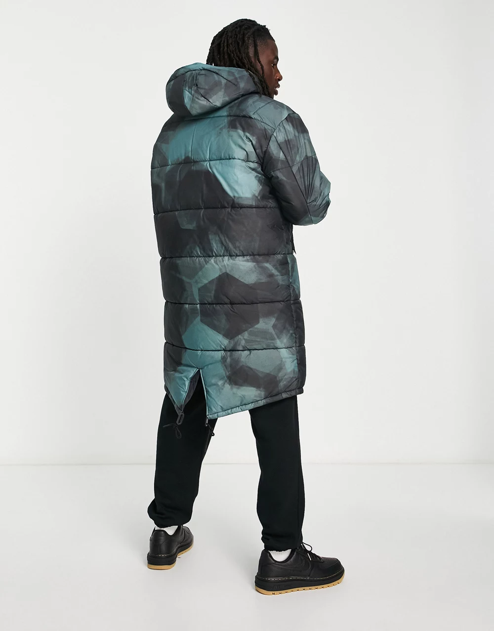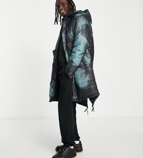 Tommy Jeans nylon badge logo multi pocket hooded puffer parka coat in black - BLACK