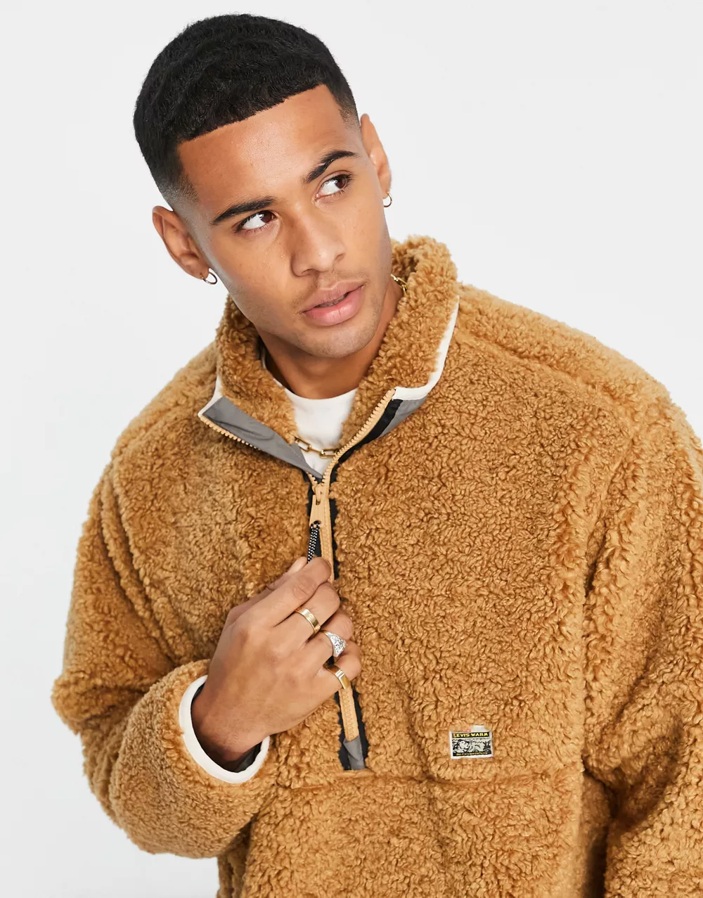 - Levi's borg half zip jacket with pockets in tan
