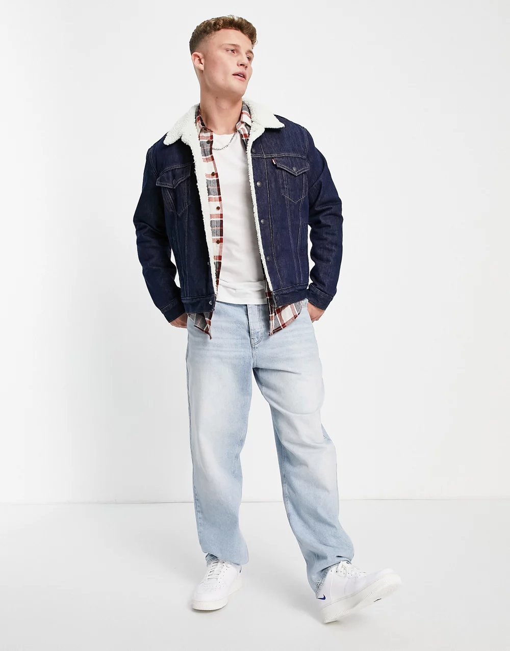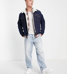 Tommy Jeans cotton back flag oversized denim trucker jacket in light wash