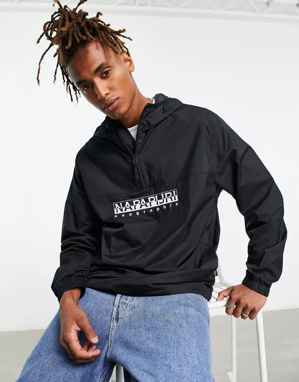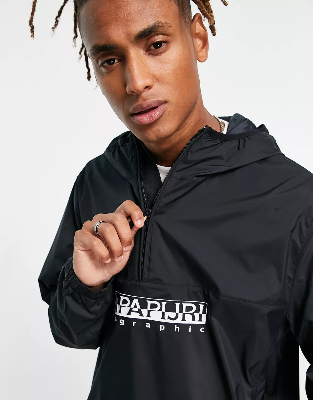 Napapijri Rainforest zip up water repellent hooded jacket in black