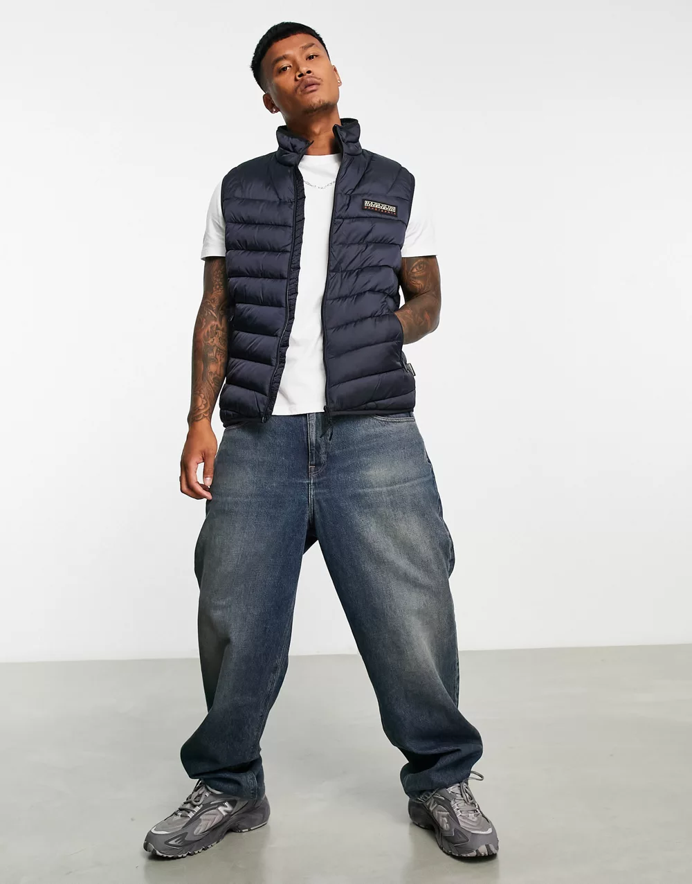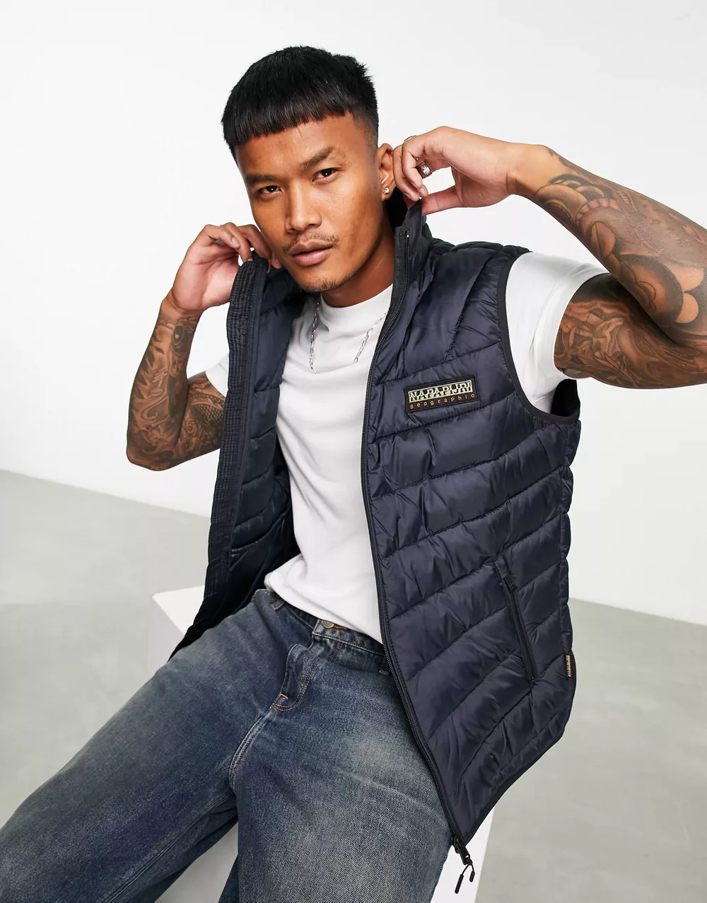 Napapijri Chairlift convertible puffer jacket with zip off sleeves in brown