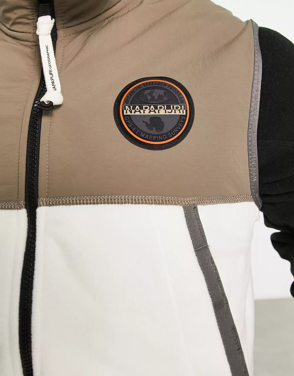- Napapijri Ambato zip up fleece gilet in off white and brown