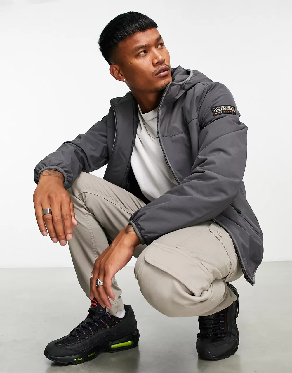 Napapijri Rainforest zip up water repellent hooded jacket in dark grey